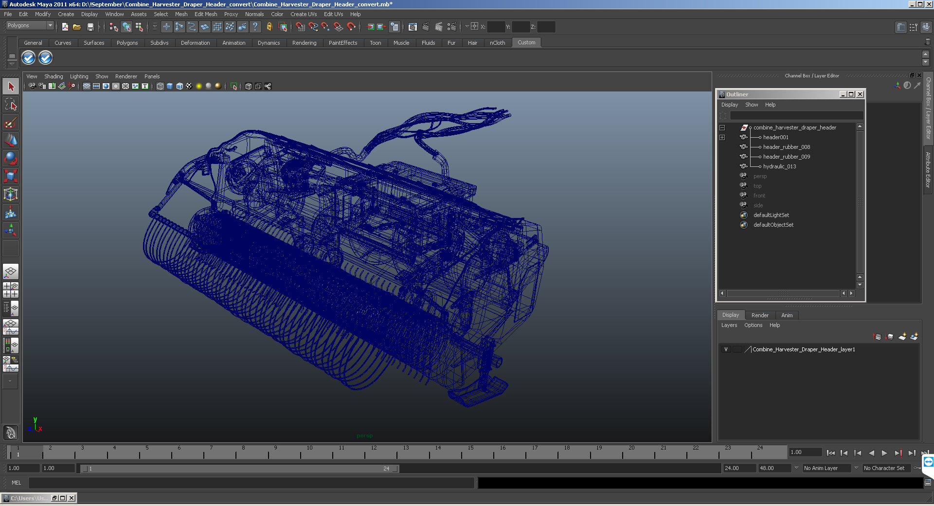 Combine Harvester Draper Header is a high quality, photo real 3d model that will enhance detail and realism to any of your rendering projects. The model has a fully textured, detailed design that allows for close-up renders, and was originally modeled in 3ds Max 2020 and rendered with V-Ray. Renders have no postprocessing!