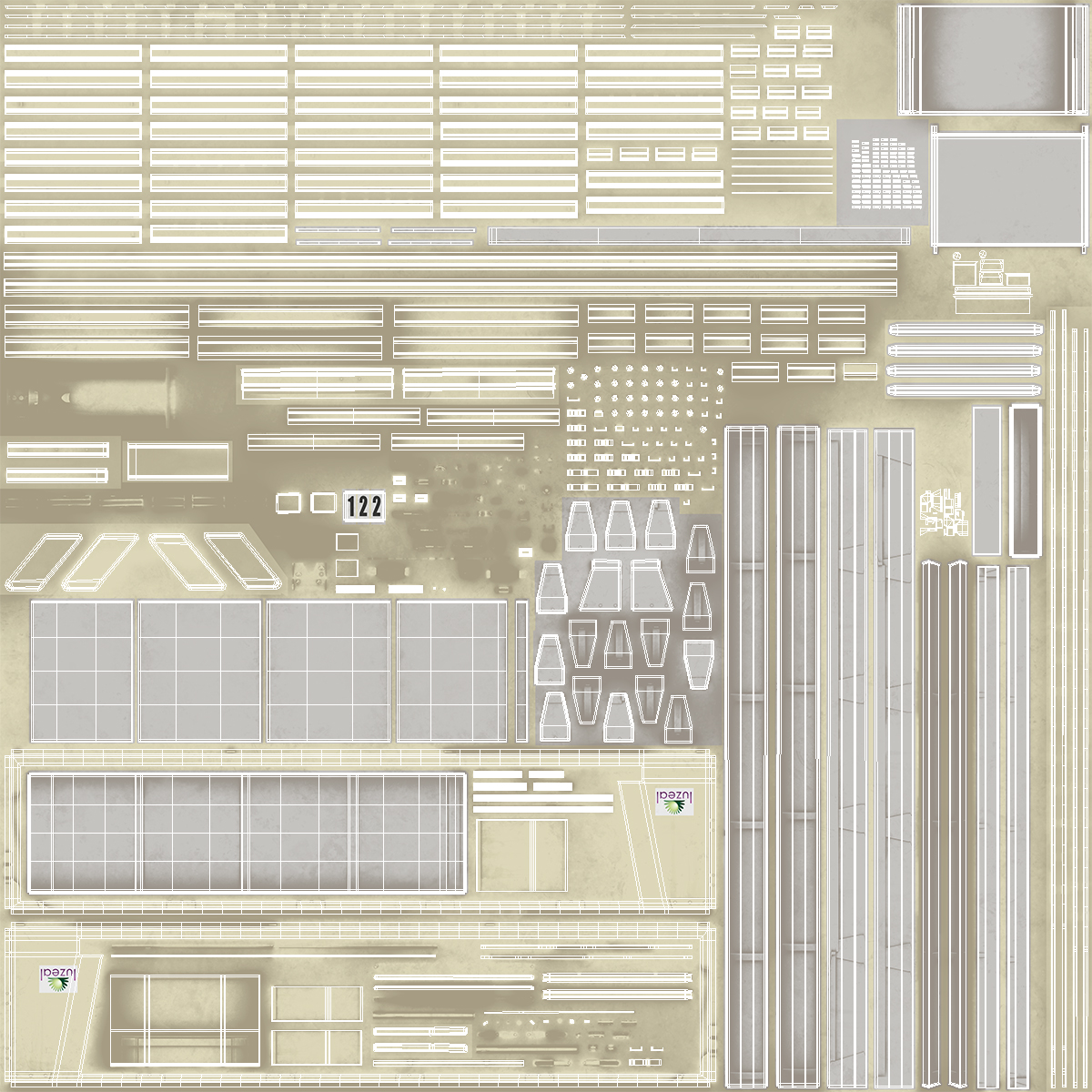 All textures and materials are included and mapped. (All colors can be easily modified.)