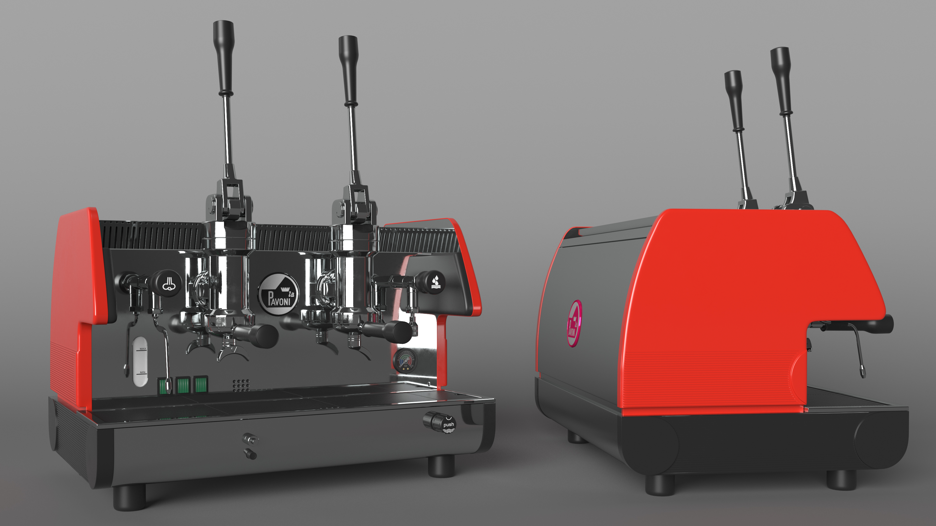 Commercial Espresso Machine La Pavoni BAR T 2L Red is a three-dimensional model of commercial-grade espresso machine featuring a pull lever mechanism for brewing espresso.