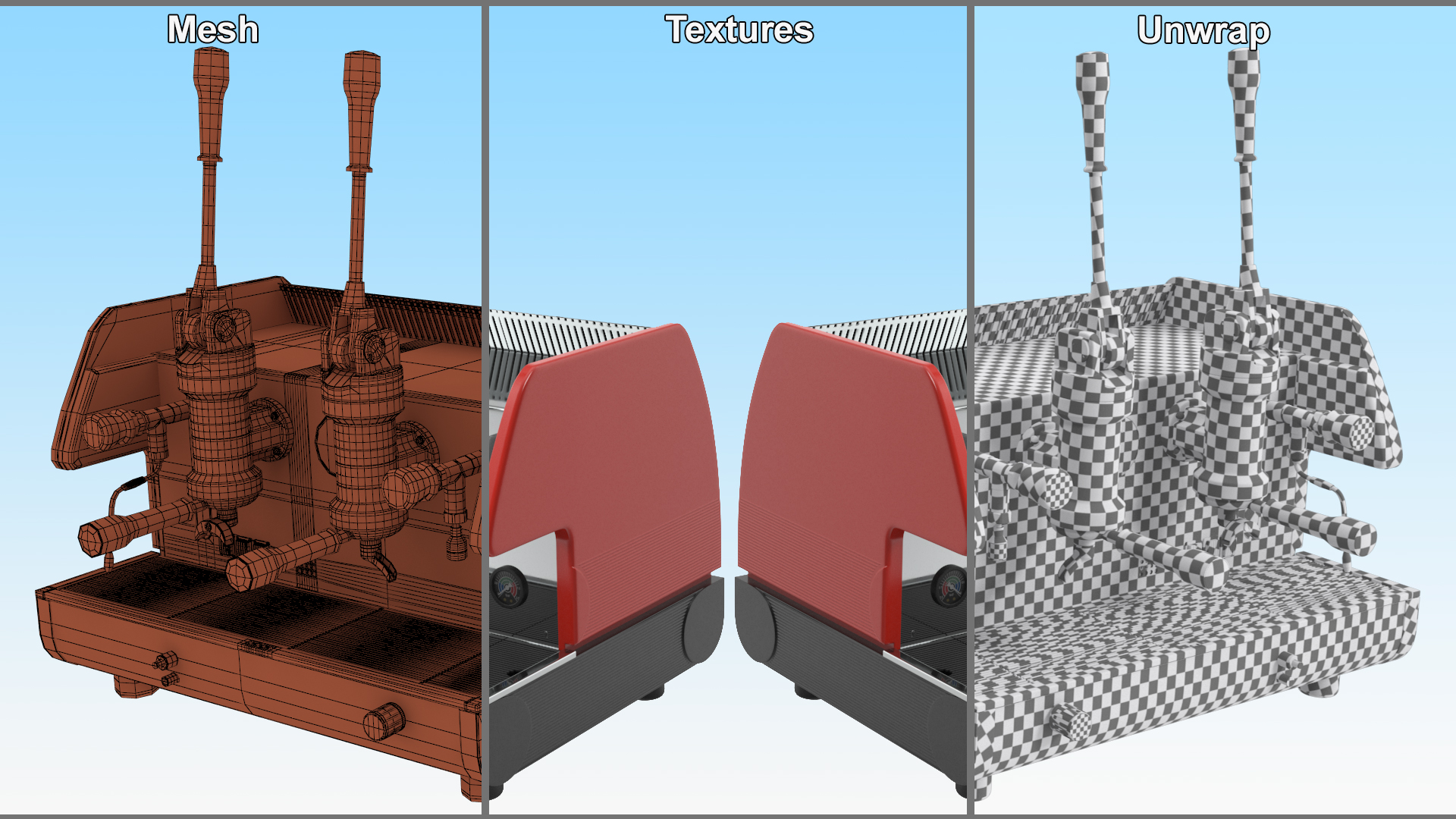 Commercial Espresso Machine La Pavoni BAR T 2L Red is a high quality, photo real 3d model that will enhance detail and realism to any of your rendering projects. The model has a fully textured, detailed design that allows for close-up renders, and was originally modeled in 3ds Max 2020 and rendered with V-Ray. Renders have no postprocessing!