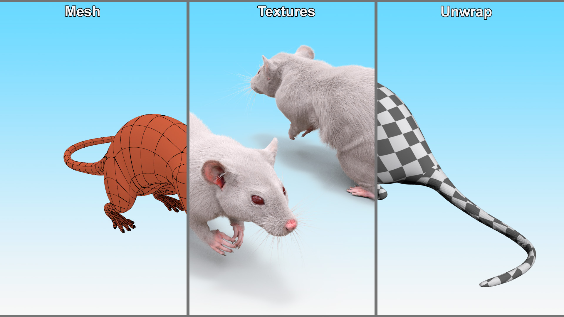 Common Rat with Fur is a three-dimensional model of rat that is a specimen of medium-sized rodents known for their adaptability and survival skills.