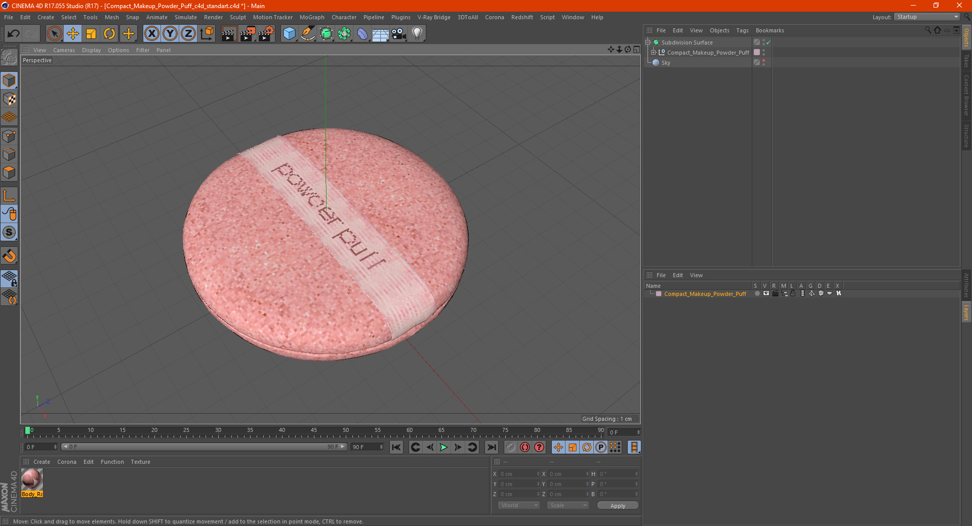 Compact Makeup Powder Puff is a high quality, photo real 3d model that will enhance detail and realism to any of your rendering projects. The model has a fully textured, detailed design that allows for close-up renders, and was originally modeled in 3ds Max 2020 and rendered with V-Ray. Renders have no postprocessing!