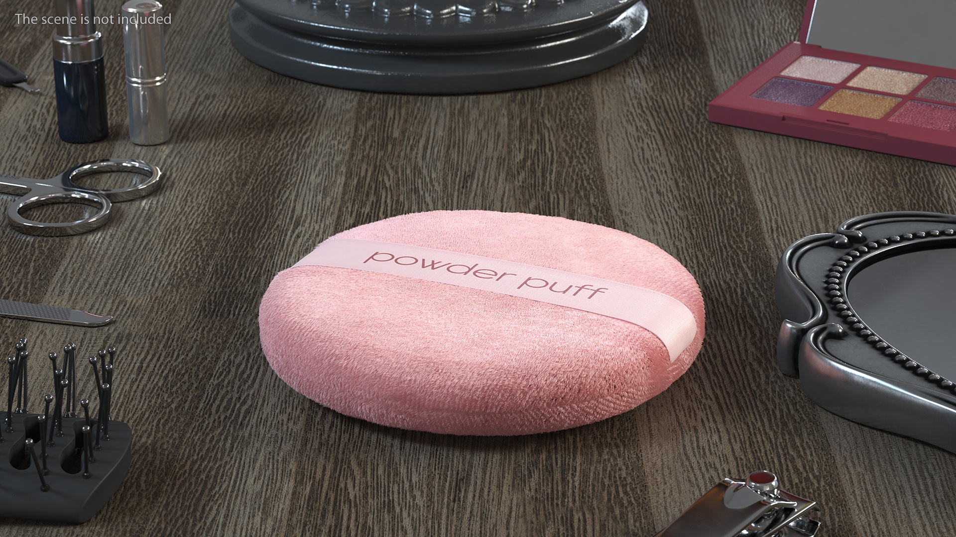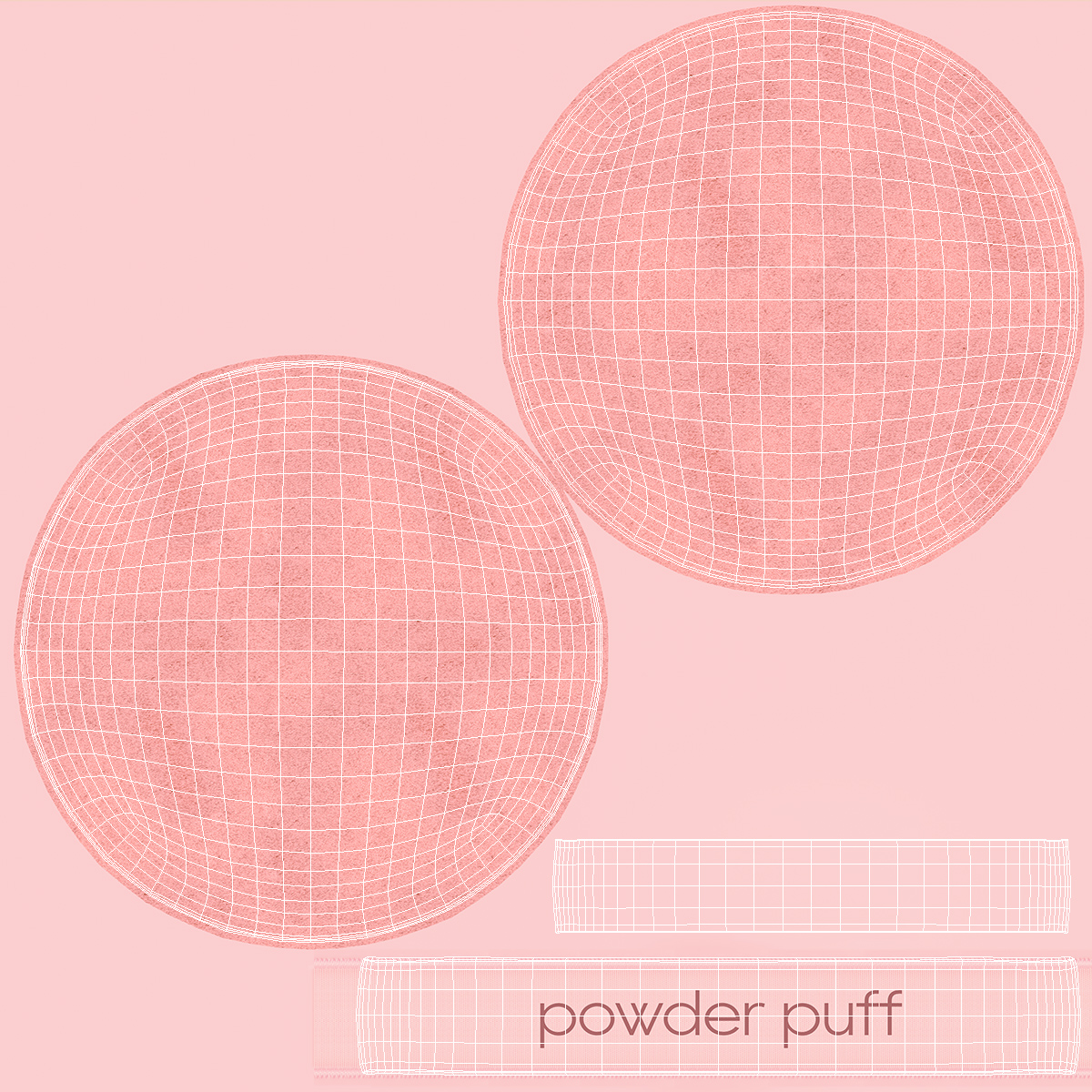Compact Makeup Powder Puff Fur is a three-dimensional model of a soft, circle tool used for the application of face powder.