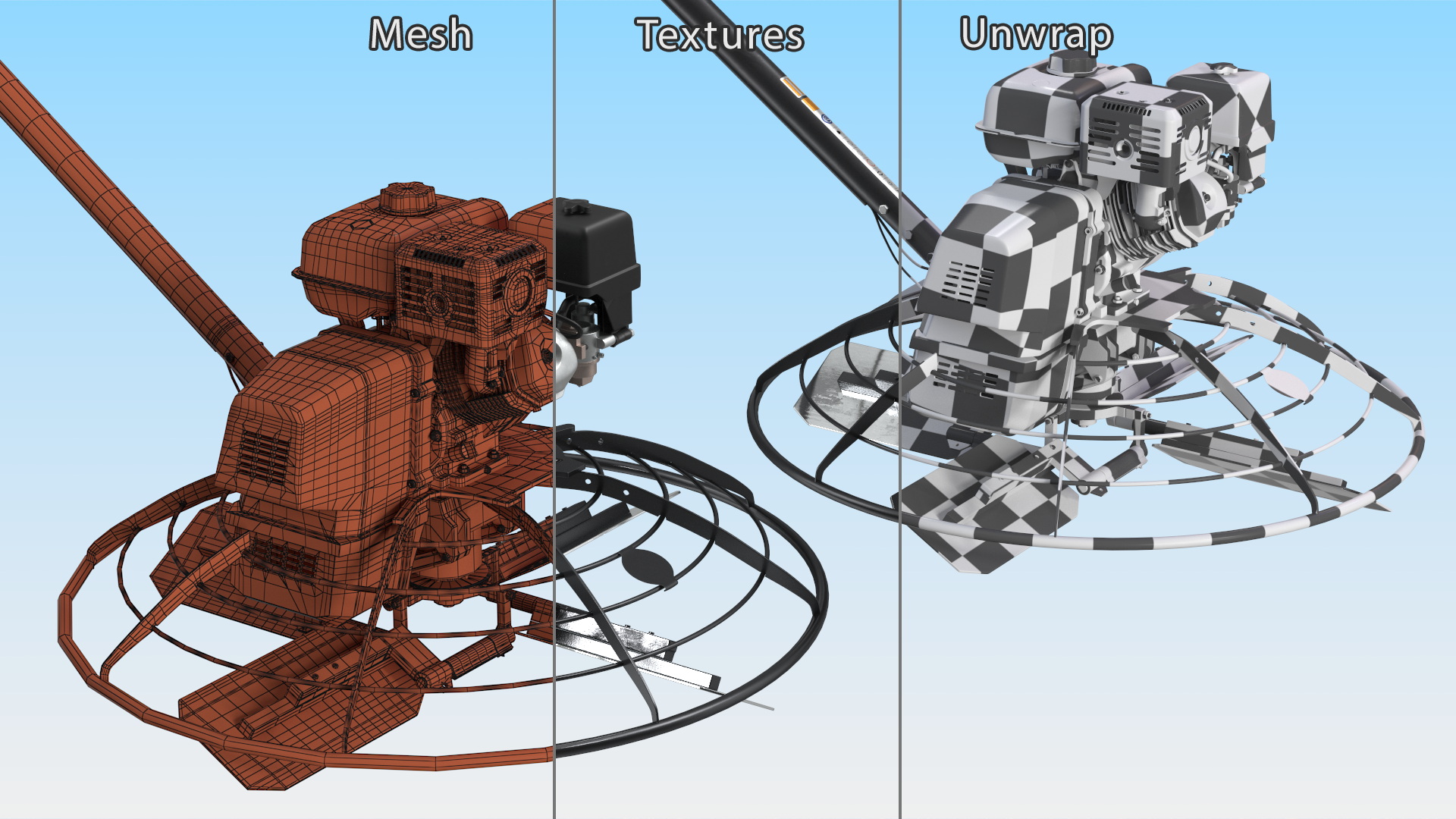 Concrete Power Trowel Grey is a 3D model of modern walk-behind motorized trowel machine which used for concrete finishing and leveling.