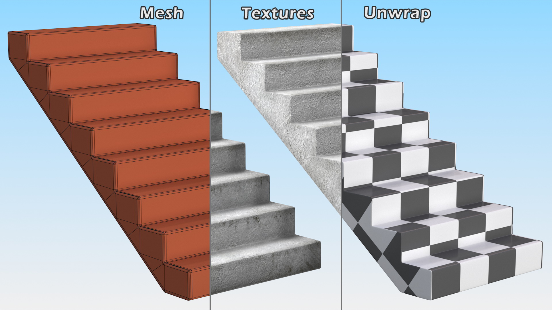 Concrete Stairs is a high quality, photo real 3d model that will enhance detail and realism to any of your rendering projects. The model has a fully textured, detailed design that allows for close-up renders, and was originally modeled in 3ds Max 2020 and rendered with V-Ray. Renders have no postprocessing!