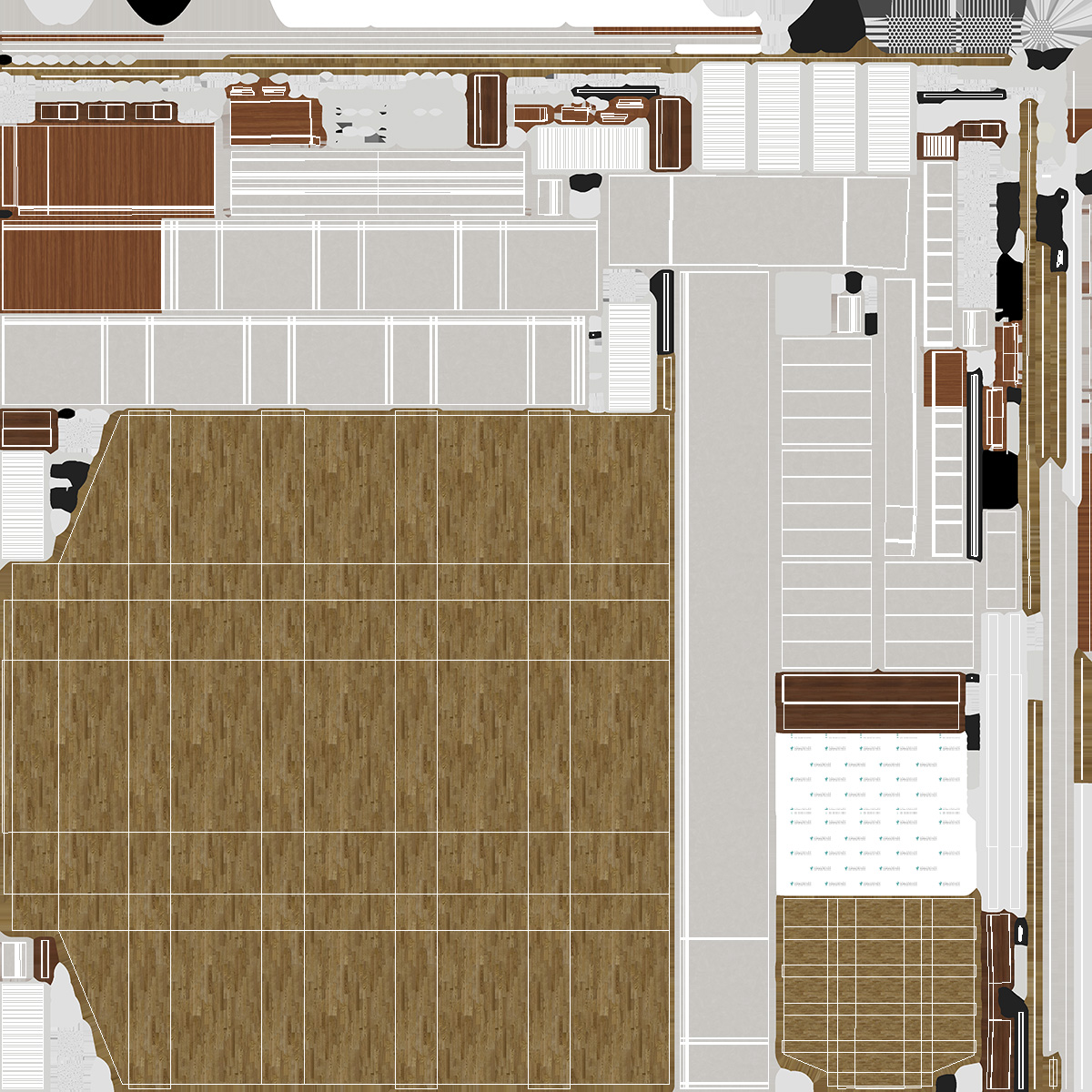All textures and materials are included and mapped. (All colors can be easily modified.)