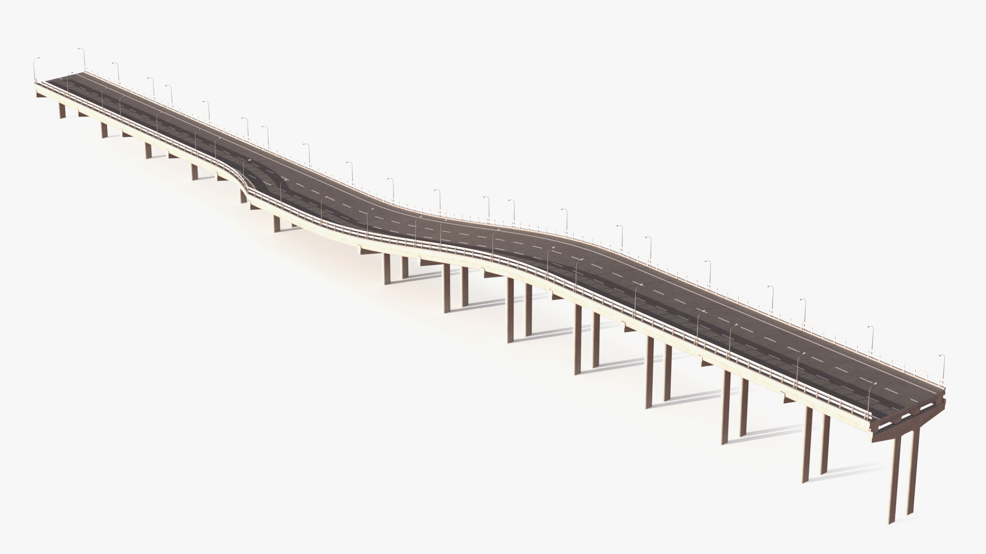 Connectable Highway Road Elements Overpass 2 to 3 Lane is a high quality, photo real 3d model that will enhance detail and realism to any of your rendering projects. The model has a fully textured, detailed design that allows for close-up renders, and was originally modeled in 3ds Max 2020 and rendered with V-Ray. Renders have no postprocessing!