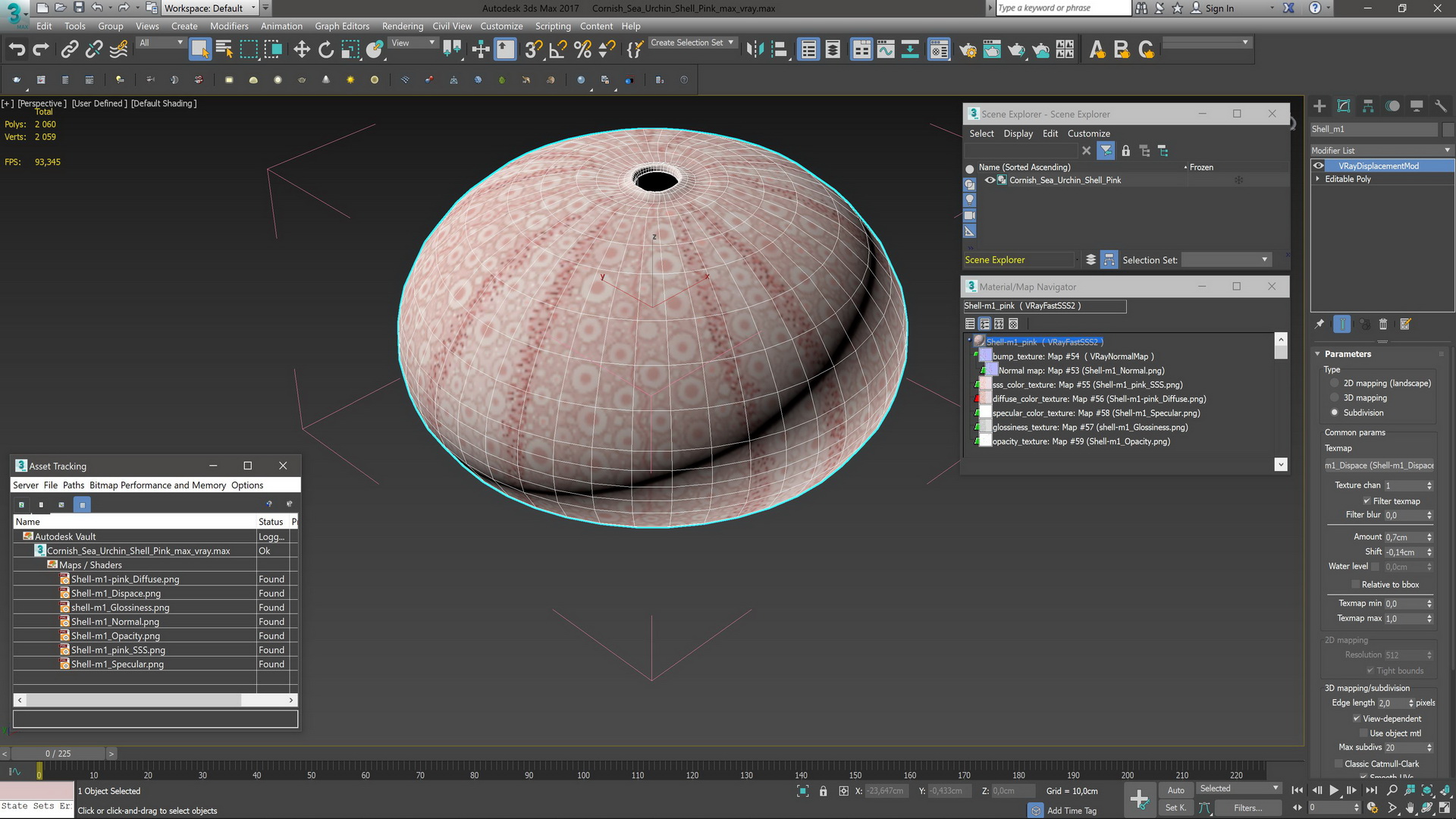 Cornish Sea Urchin Shell Pink is a high quality, photo real 3d model that will enhance detail and realism to any of your rendering projects. The model has a fully textured, detailed design that allows for close-up renders, and was originally modeled in 3ds Max 2020 and rendered with V-Ray. Renders have no postprocessing!