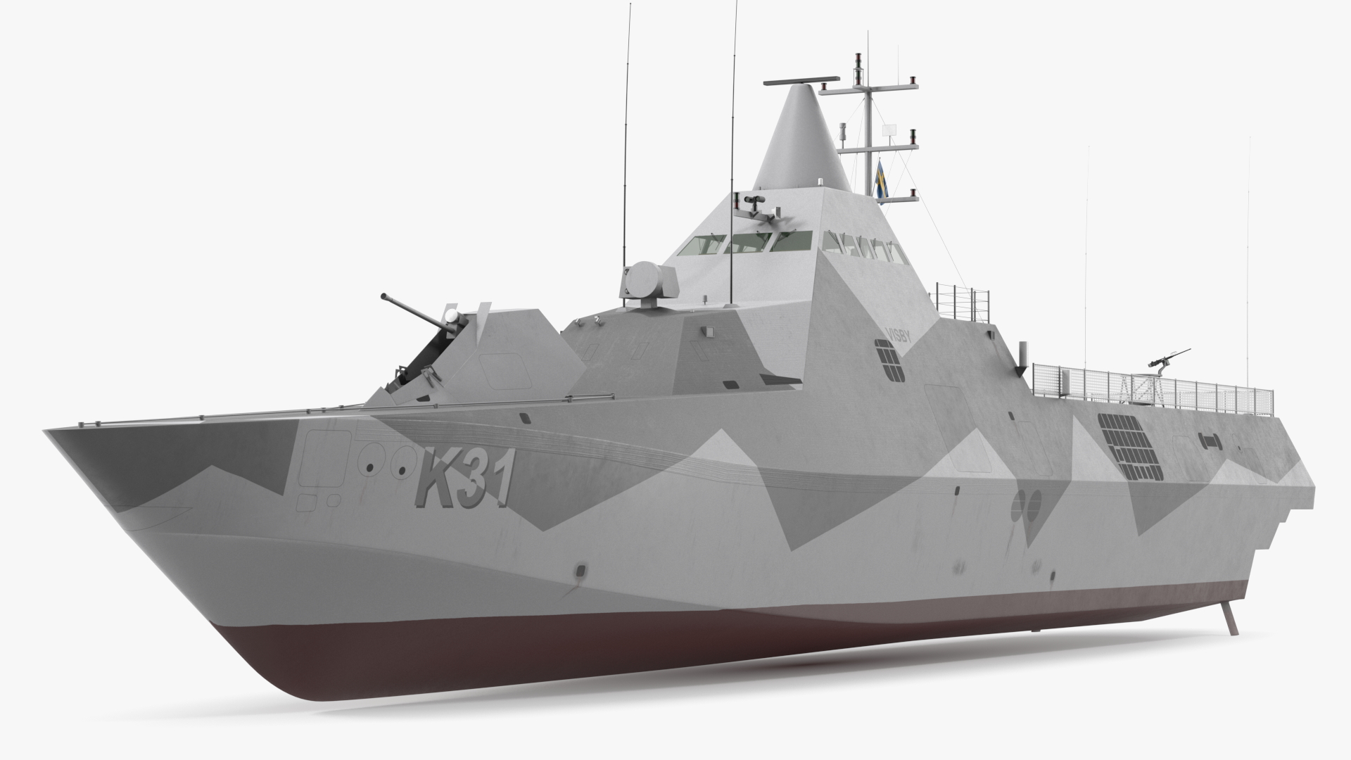 Corvette Visby Class Rigged is a high quality, photo real 3d model that will enhance detail and realism to any of your rendering projects. The model has a fully textured, detailed design that allows for close-up renders, and was originally modeled in 3ds Max 2020 and rendered with V-Ray. Renders have no postprocessing!