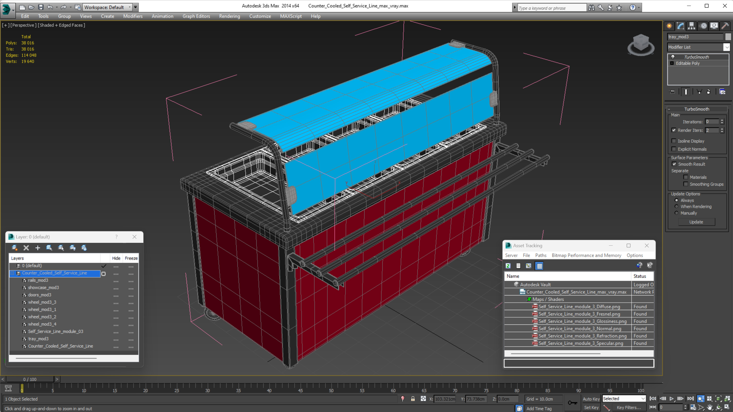 Counter Cooled Self Service Line is a high quality, photo real 3d model that will enhance detail and realism to any of your rendering projects. The model has a fully textured, detailed design that allows for close-up renders, and was originally modeled in 3ds Max 2020 and rendered with V-Ray. Renders have no postprocessing!