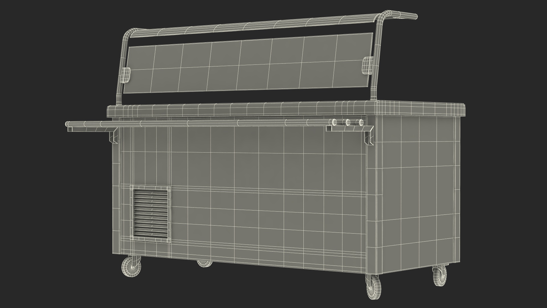 Counter Heated Service Line is a 3D model of heated self service display line counter which is a piece of equipment which used in commercial and institutional food service settings, such as cafe business, cafeteria business, restaurants, elementary and junior high school cafeterias and school buffets.