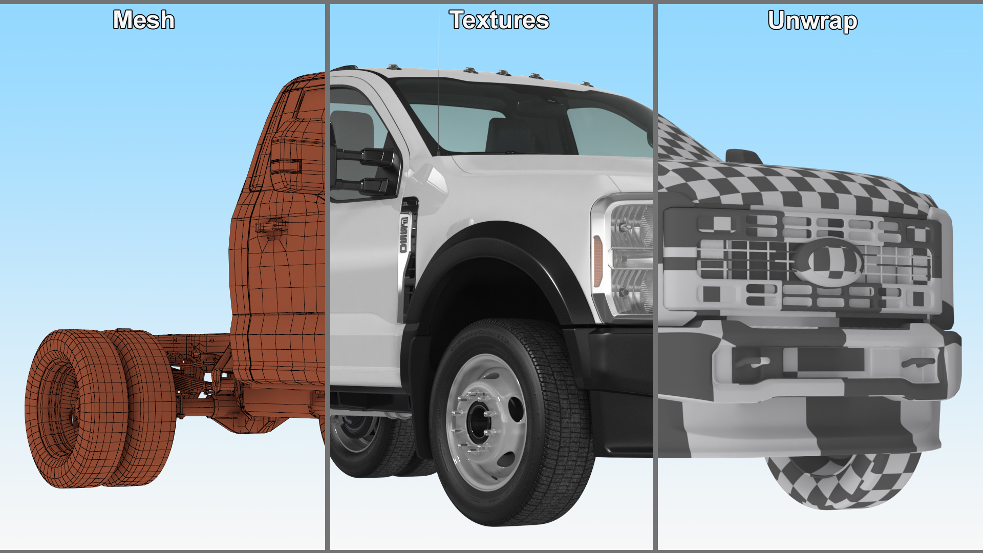 Crew Cab 2023 Ford Super Duty F-550 Lariat Bare Chassis White is a high quality, photo real 3d model that will enhance detail and realism to any of your rendering projects. The model has a fully textured, detailed design that allows for close-up renders, and was originally modeled in 3ds Max 2020 and rendered with V-Ray. Renders have no postprocessing!