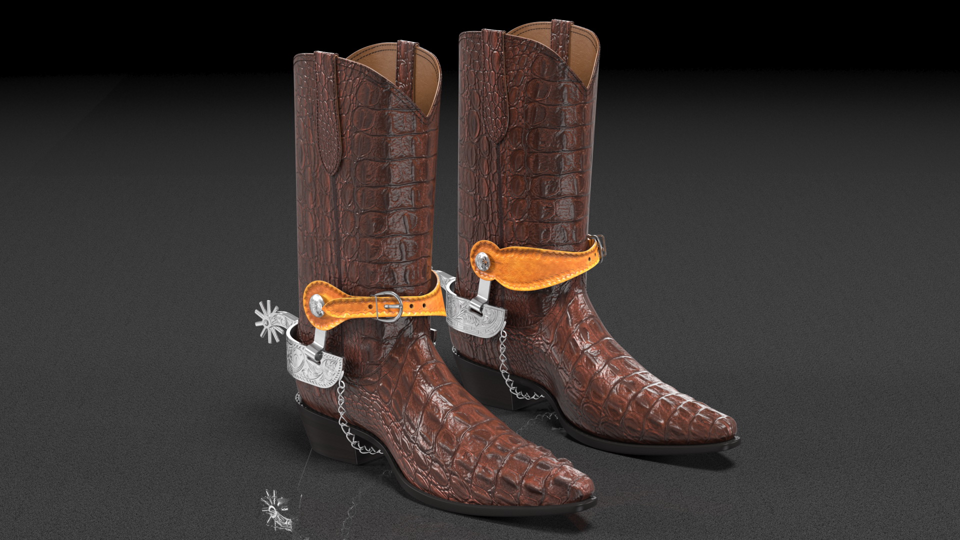 Crocodile Cowboy Boots with Spurs is a high quality, photo real 3d model that will enhance detail and realism to any of your rendering projects. The model has a fully textured, detailed design that allows for close-up renders, and was originally modeled in 3ds Max 2020 and rendered with V-Ray. Renders have no postprocessing!