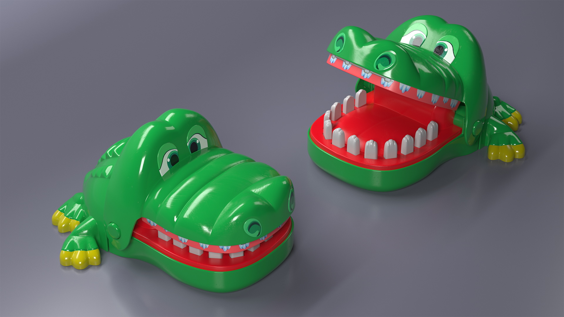 Crocodile Dentist Toy for 3D Print is a high-quality 3D model, ready to be used for 3D printing projects. The model's geometry is solid, allowing the forms and details to be replicated excellently in a 3D print. The product renders were created in 3Ds Max with V-Ray to demonstrate how the model may look with materials applied. The renders have no post-processing!
