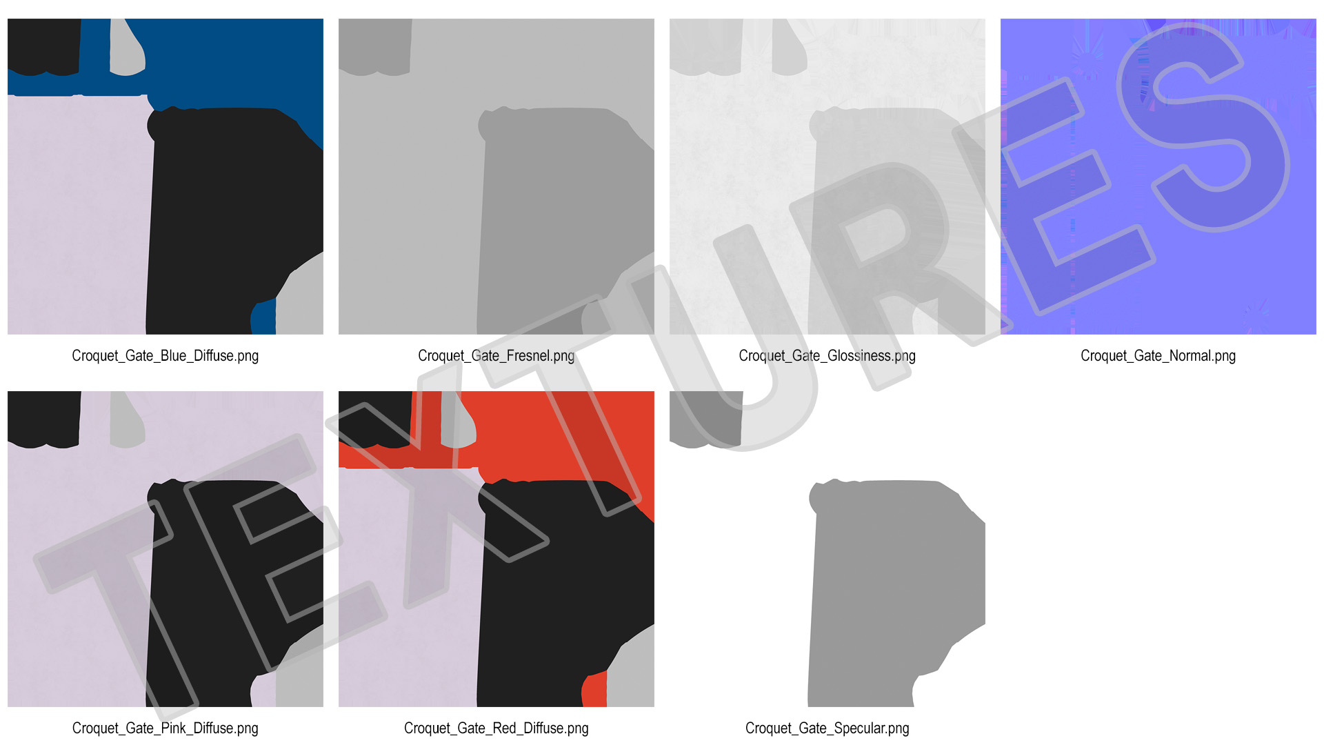 Croquet Gate is a high quality, photo real 3d model that will enhance detail and realism to any of your rendering projects. The model has a fully textured, detailed design that allows for close-up renders, and was originally modeled in 3ds Max 2020 and rendered with V-Ray. Renders have no postprocessing!