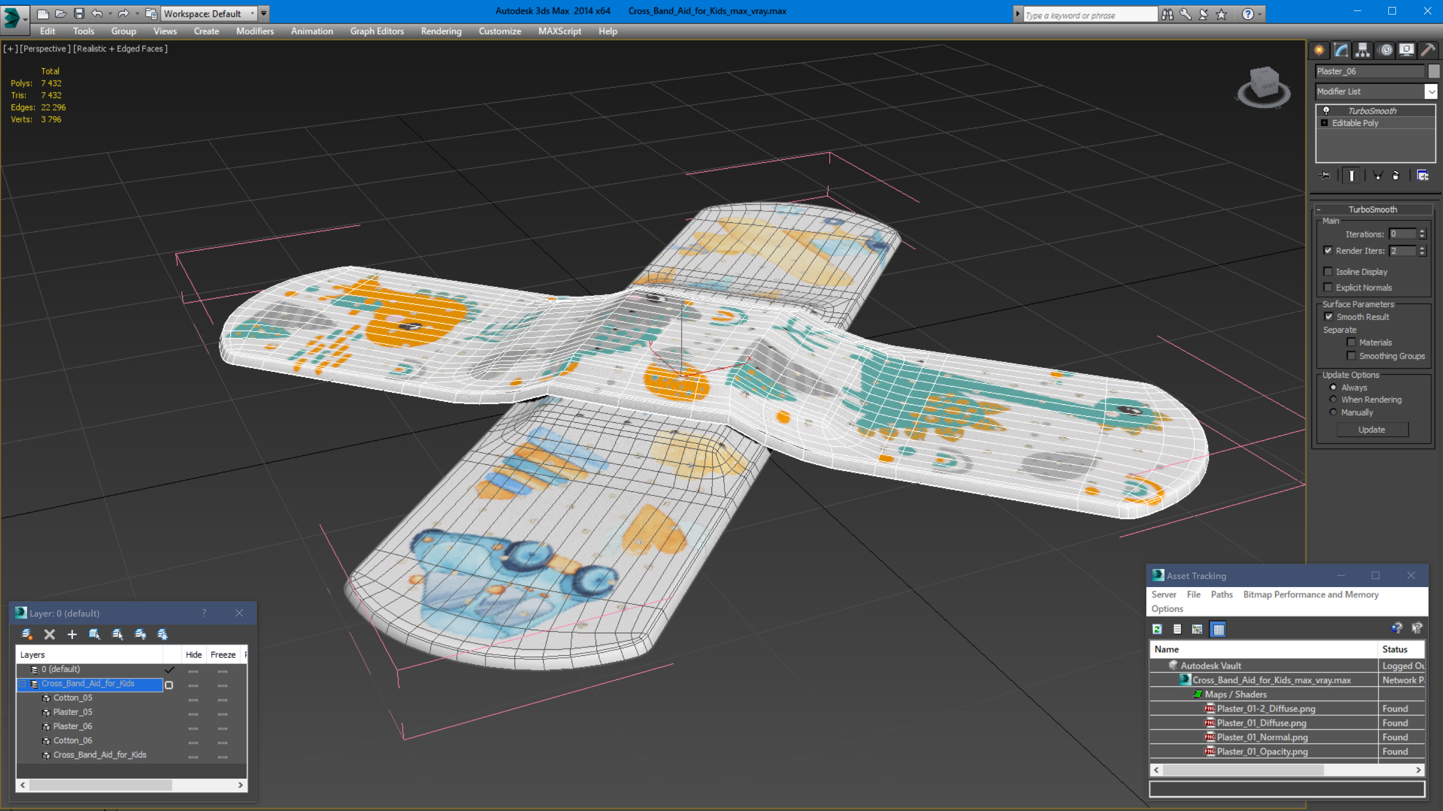 Cross Band Aid for Kids is a high quality, photo real 3d model that will enhance detail and realism to any of your rendering projects. The model has a fully textured, detailed design that allows for close-up renders, and was originally modeled in 3ds Max 2020 and rendered with V-Ray. Renders have no postprocessing!