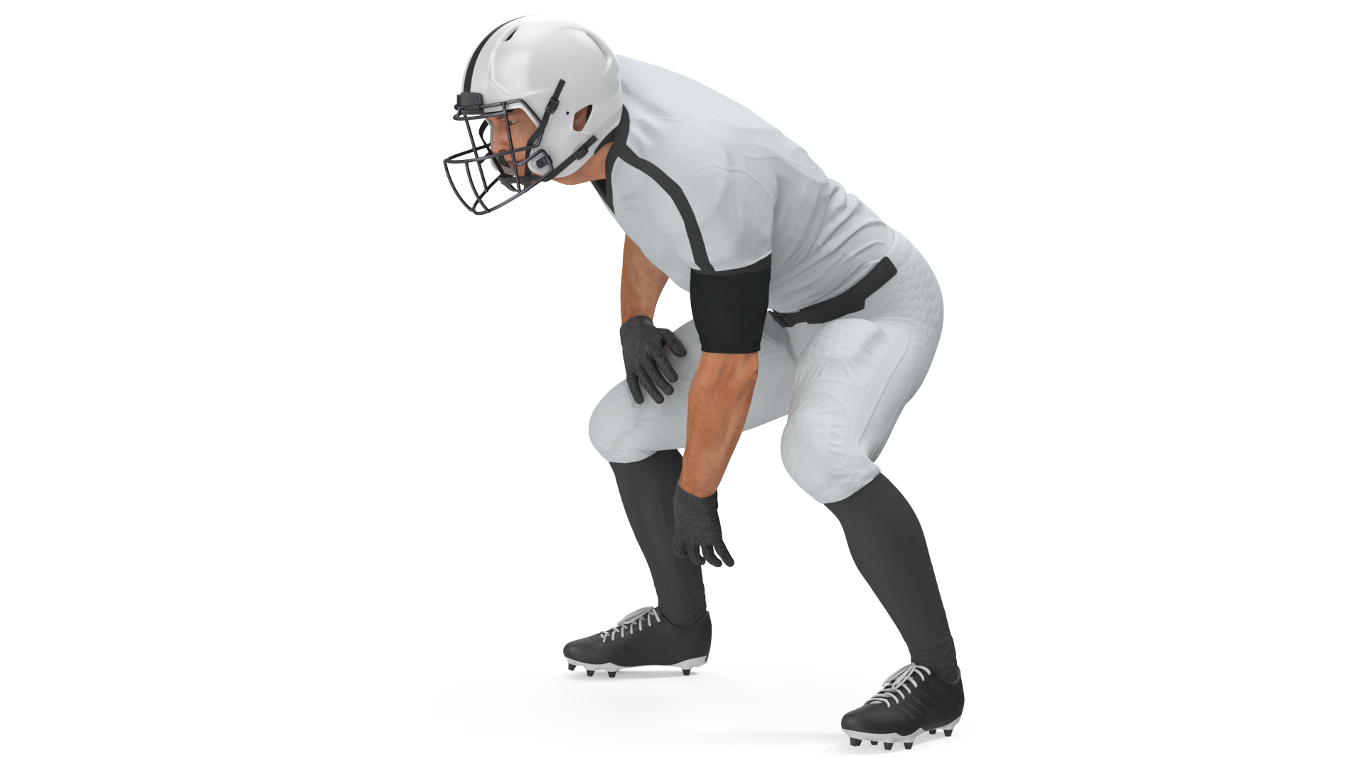 Crouching American Football Player White Uniform is a 3D model of athlete, who is a brave and strong U.S. sportsman or athletic person.