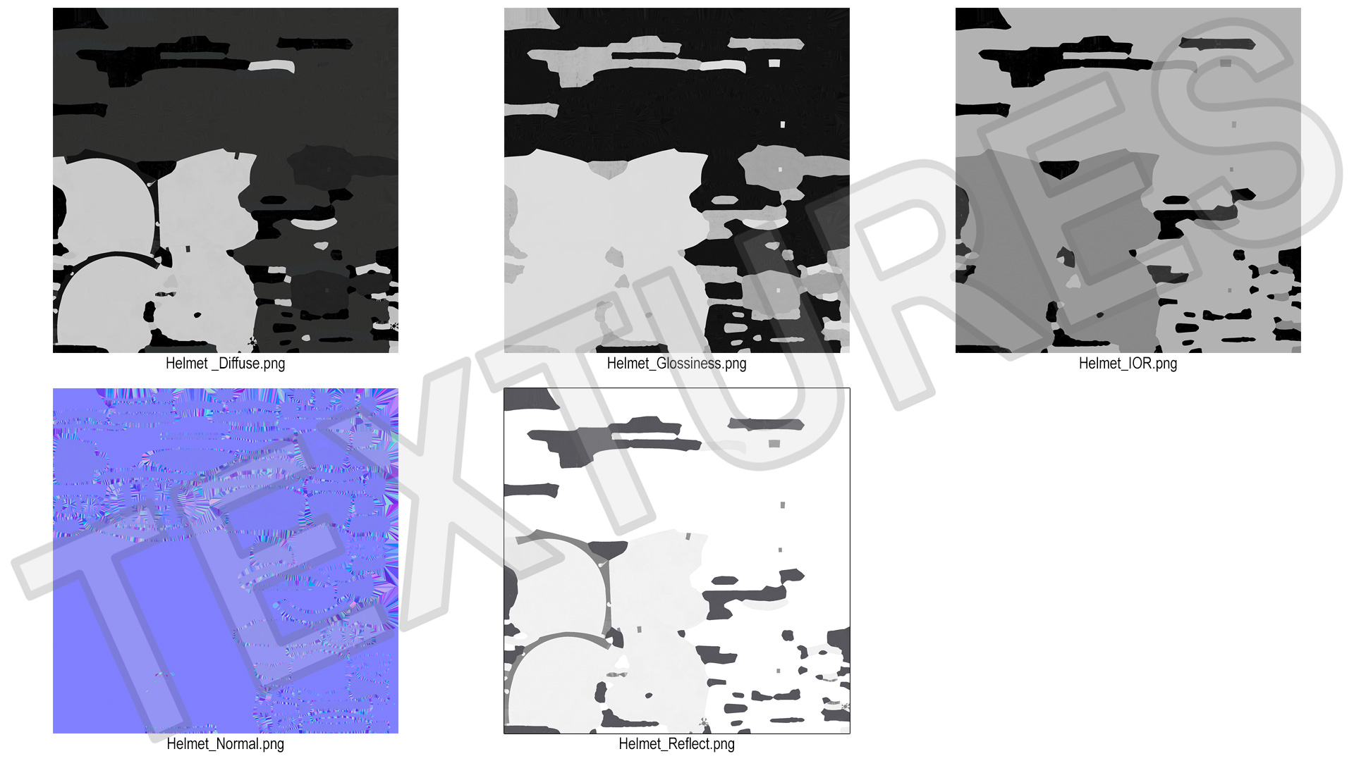 All textures and materials are included and mapped. (All colors can be easily modified.)