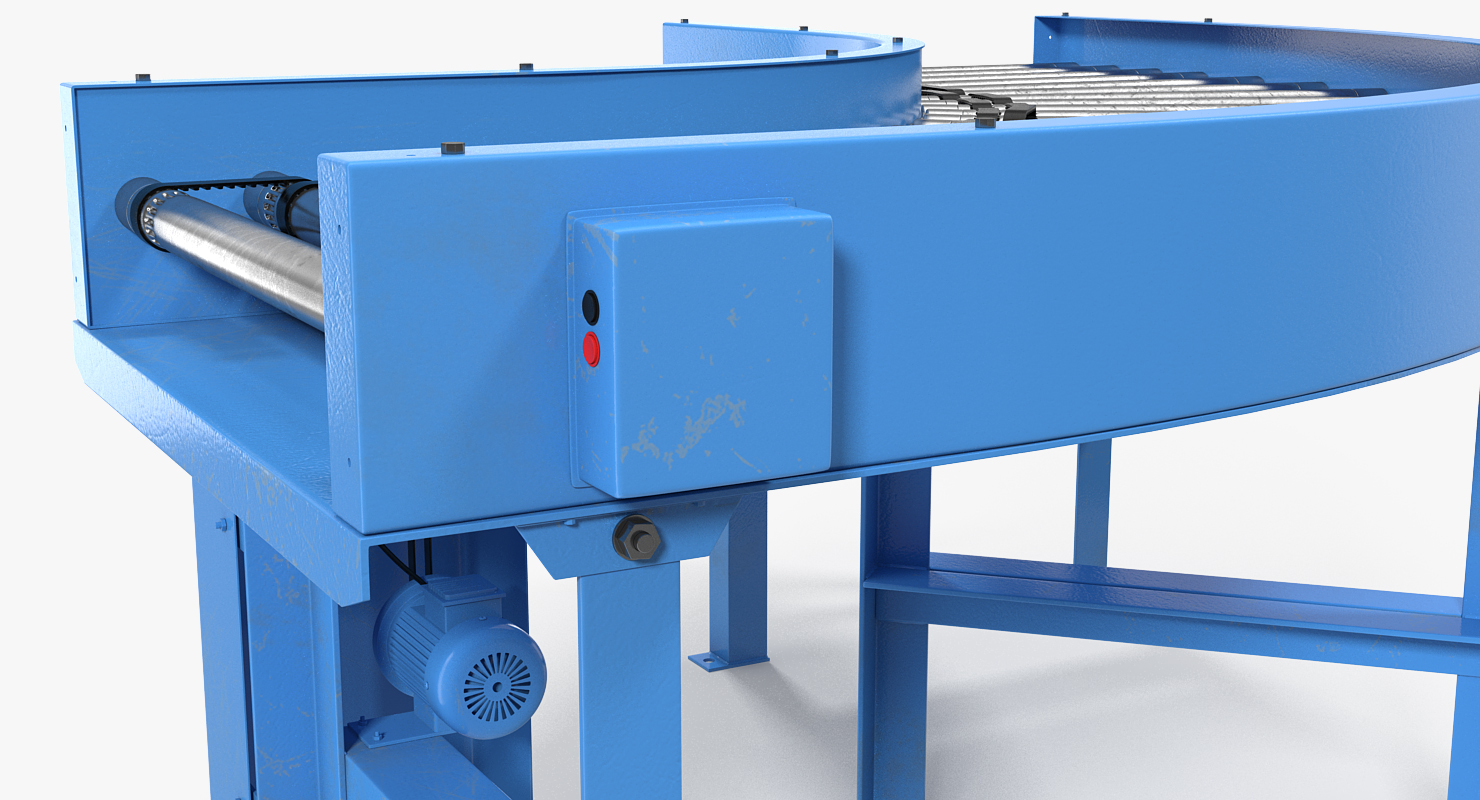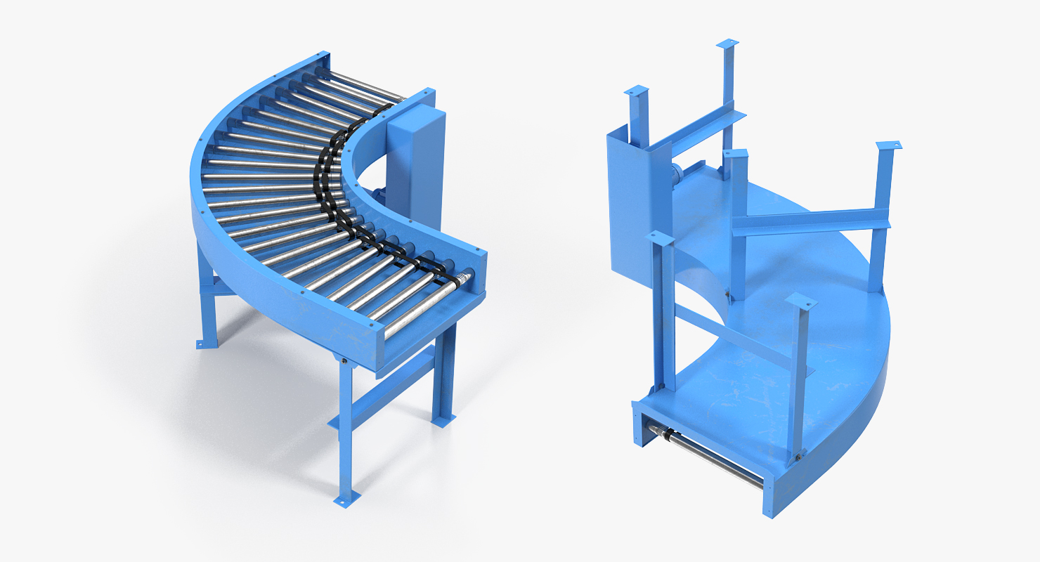 Curved Roller Conveyor is a high quality, photo real 3d model that will enhance detail and realism to any of your rendering projects. The model has a fully textured, detailed design that allows for close-up renders, and was originally modeled in 3ds Max 2020 and rendered with V-Ray. Renders have no postprocessing!