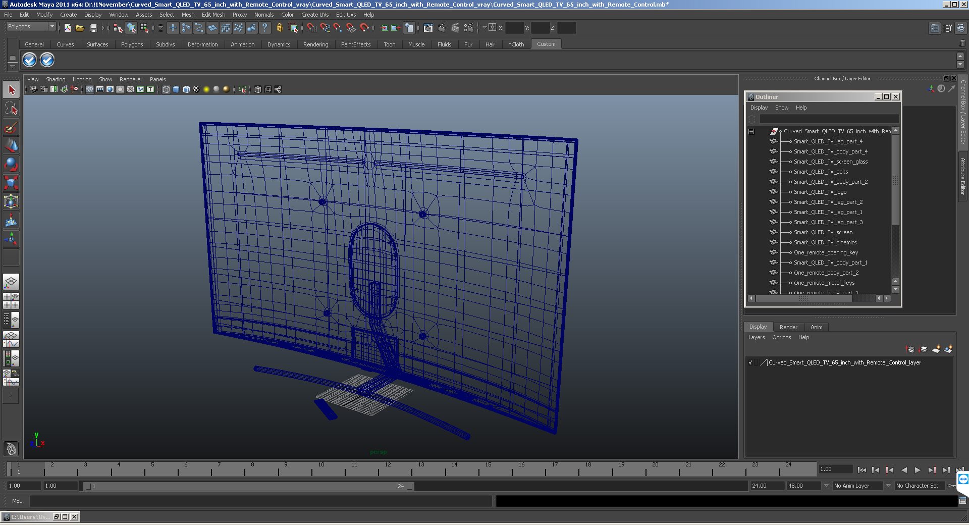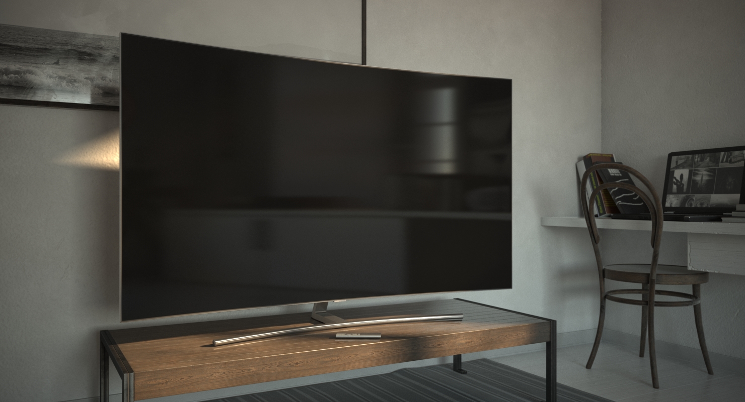 Curved Smart QLED TV 65 inch with Remote Control is a high quality, photo real 3d model that will enhance detail and realism to any of your rendering projects. The model has a fully textured, detailed design that allows for close-up renders, and was originally modeled in 3ds Max 2020 and rendered with V-Ray. Renders have no postprocessing!