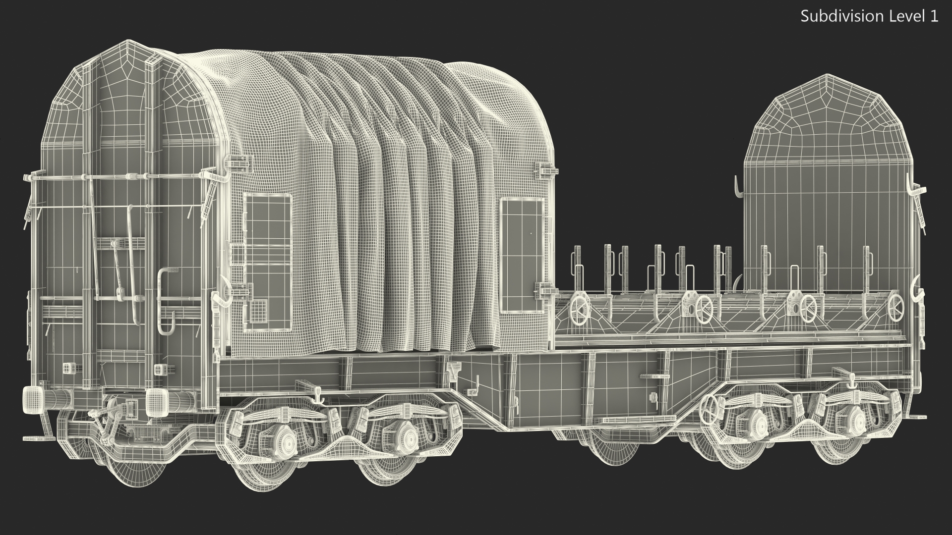 DB Cargo Coil Transporter Tarpaulin Freight Wagon Opened Dirty is a high quality, photo real 3d model that will enhance detail and realism to any of your rendering projects. The model has a fully textured, detailed design that allows for close-up renders, and was originally modeled in 3ds Max 2020 and rendered with V-Ray. Renders have no postprocessing!