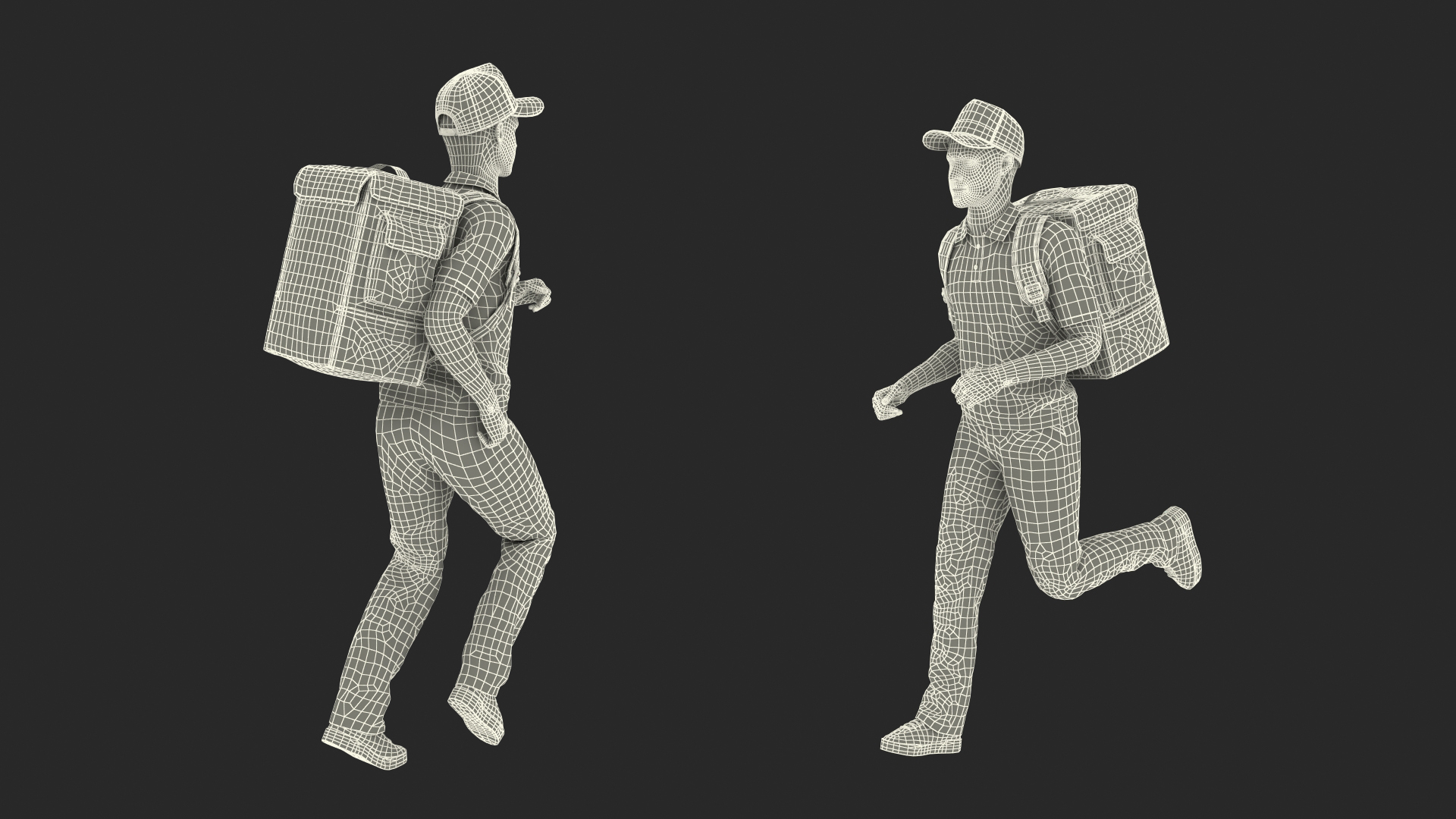 The model features a detailed and realistic delivery man, fully rigged for animation with expressive facial features and body movements. The outfit includes a branded baseball cap, practical delivery uniform, and stylish fur-trimmed elements. The rigging ensures smooth articulation, making it suitable for dynamic action or dialogue-driven scenes in digital content.