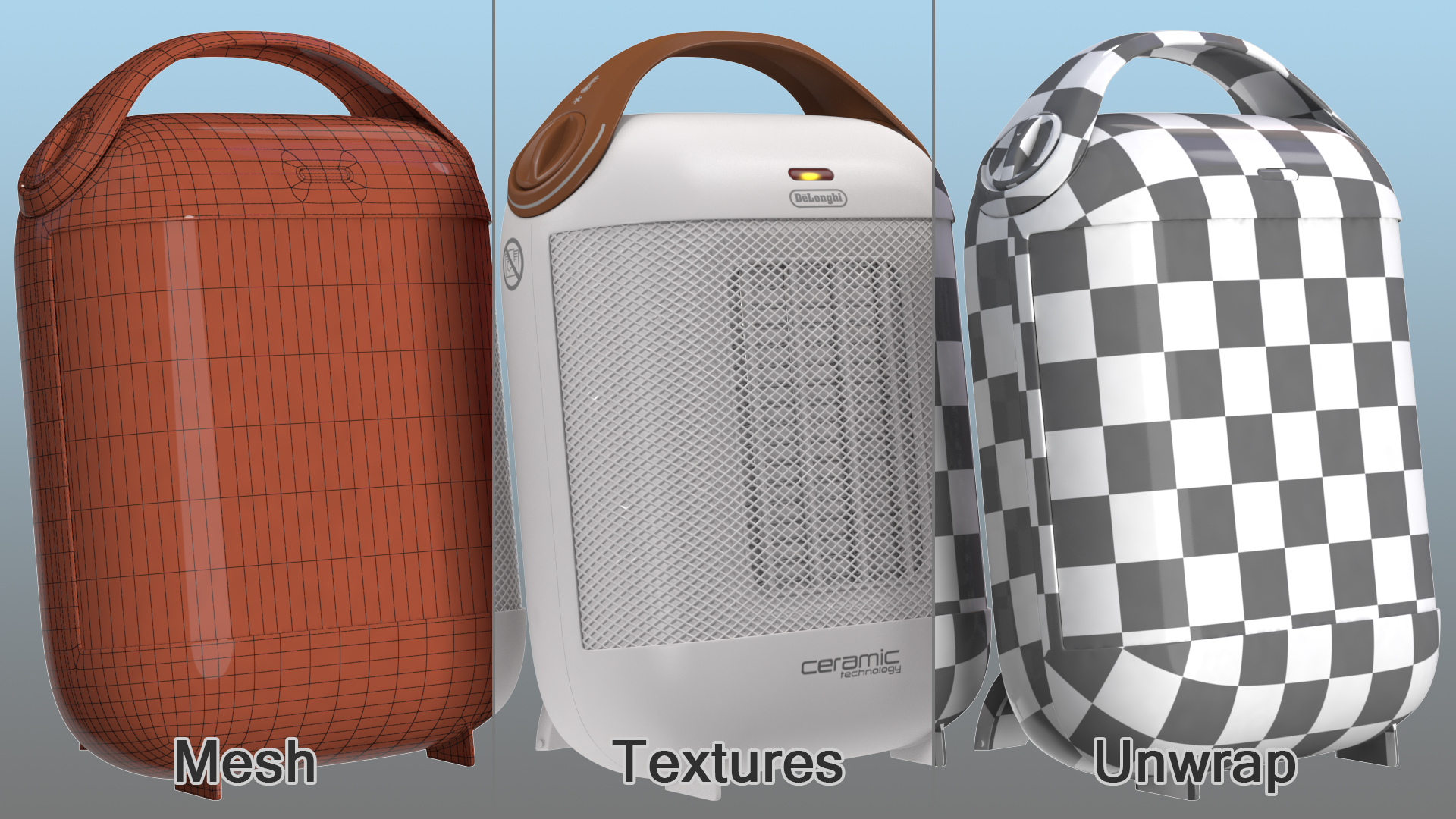 DeLonghi HFX30C18IW Capsule Ceramic Heater is a high quality, photo real 3d model that will enhance detail and realism to any of your rendering projects. The model has a fully textured, detailed design that allows for close-up renders, and was originally modeled in 3ds Max 2020 and rendered with V-Ray. Renders have no postprocessing!