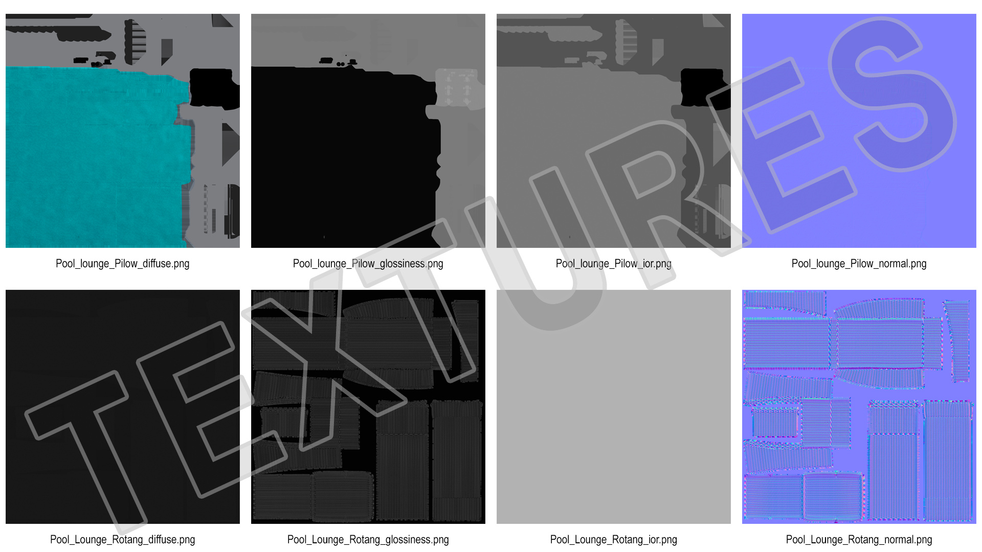 Designer Pool Lounge Chair Black Blue Rigged for Maya is fully rigged and is ready to be animated in Maya. You can easily position it the way you need or animate it the way your project requires. See the screenshots to get an idea of how rigging works. The pose of the model on the render images is an example and can be recreated using rig, it is not initially included into the product.