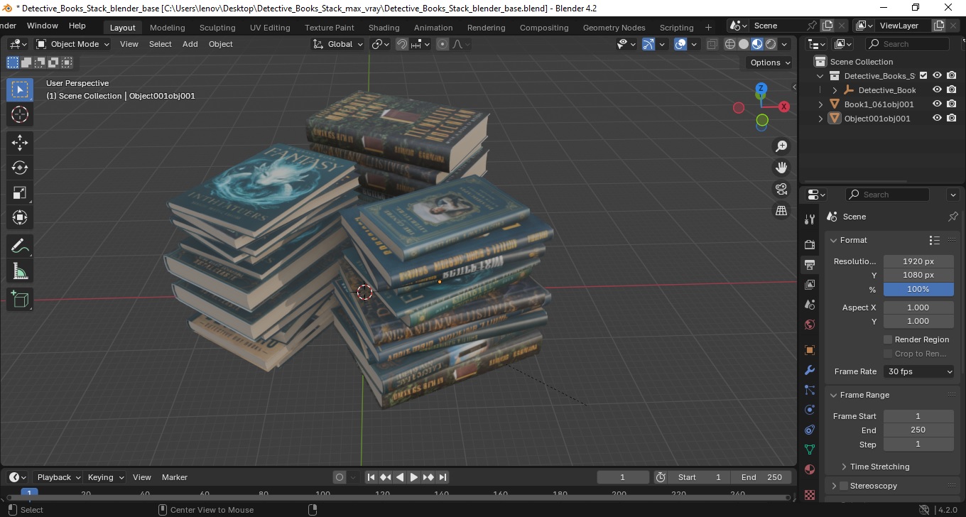 Detective Books Stack is a three-dimensional model of books stack or pile, that consists of multiple books placed on top of one another (vertically aligned).