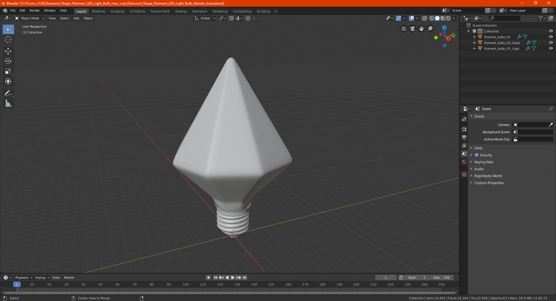 Diamond Shape Filament LED Light Bulb is a high quality, photo real 3d model that will enhance detail and realism to any of your rendering projects. The model has a fully textured, detailed design that allows for close-up renders, and was originally modeled in 3ds Max 2020 and rendered with V-Ray. Renders have no postprocessing!