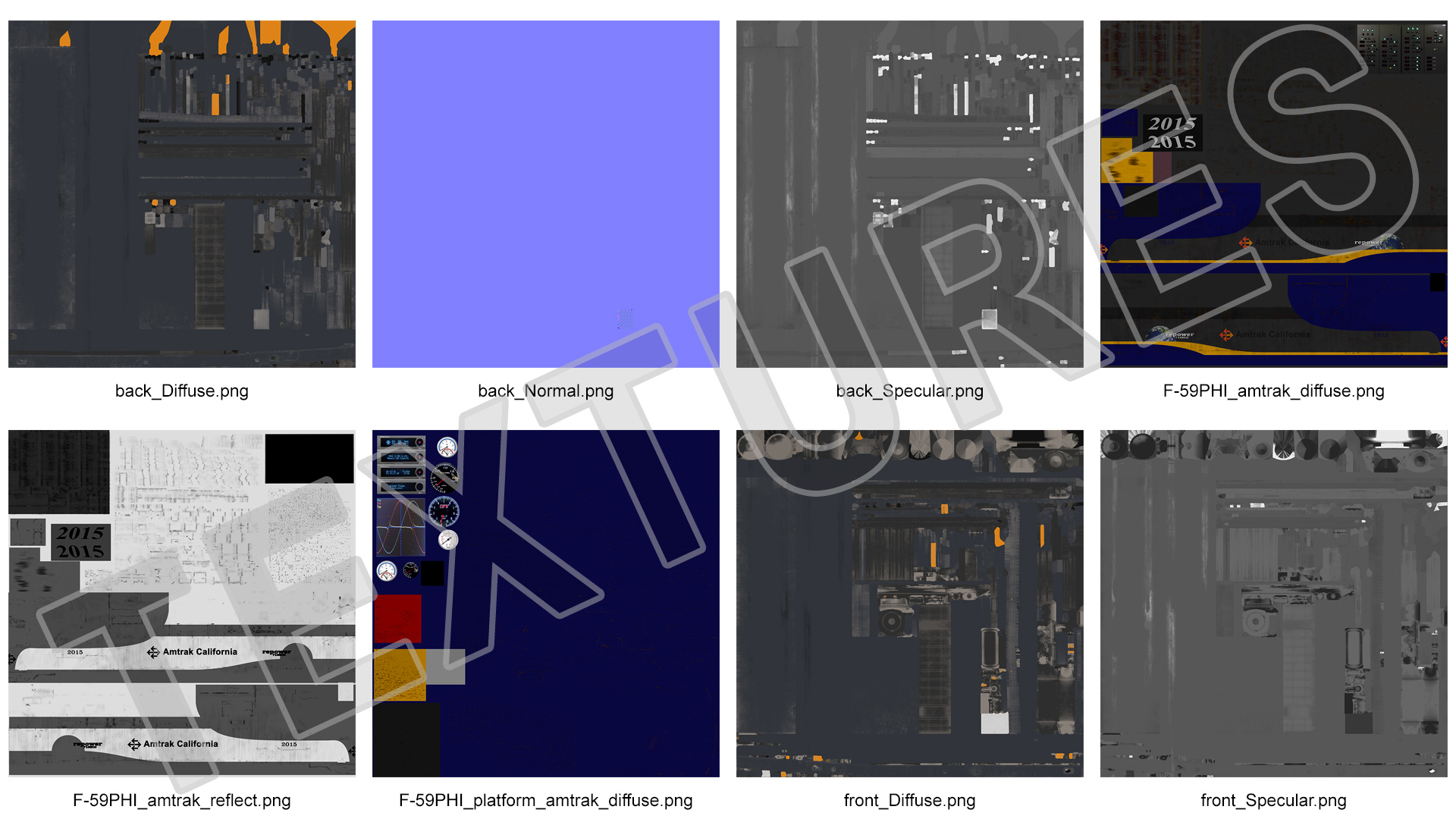 All textures and materials are included and mapped. (All colors can be easily modified.)