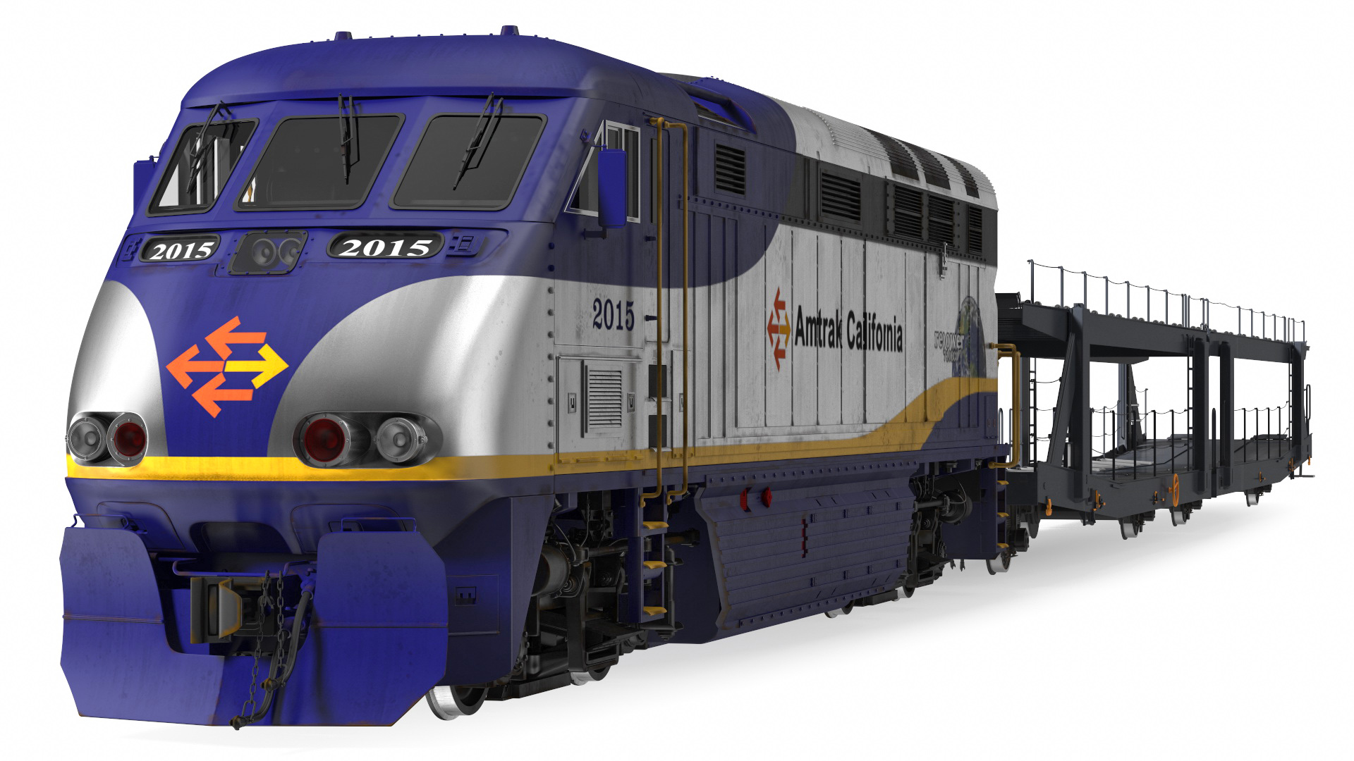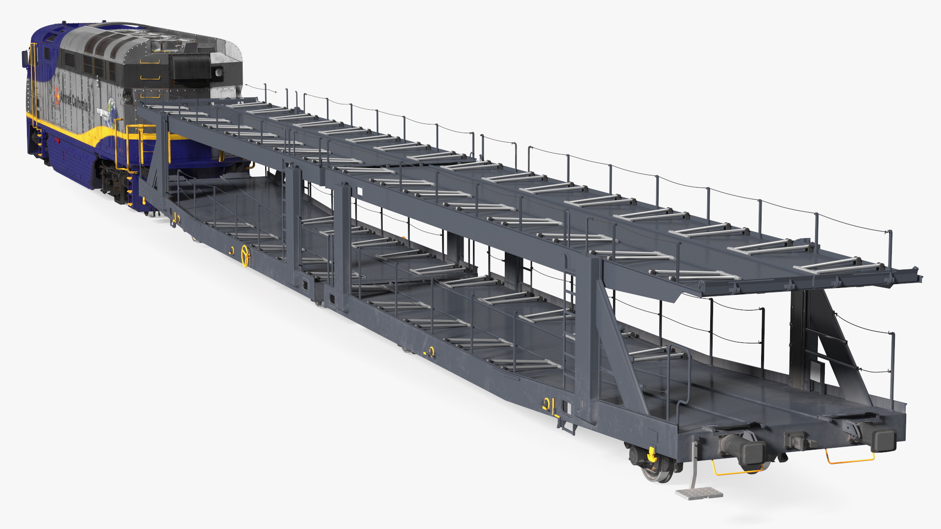 Diesel Electric Locomotive with Autorack Car Transporter is a three-dimensional model of a railroad engine vehicle with cargo vehicle, which used for delivery of factory-new cars and vans to dealers.