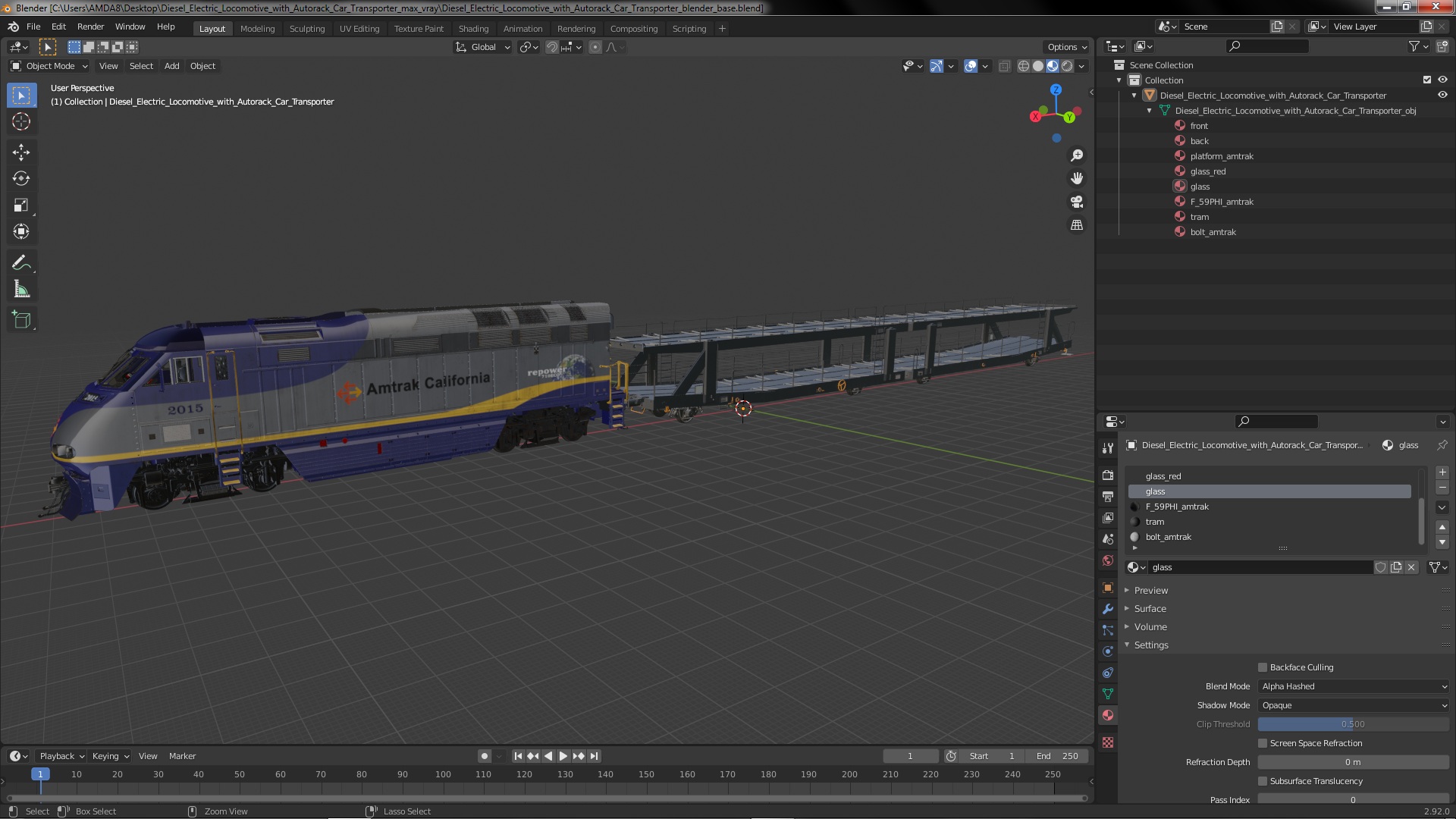 Diesel Electric Locomotive with Autorack Car Transporter is a high quality, photo real 3d model that will enhance detail and realism to any of your rendering projects. The model has a fully textured, detailed design that allows for close-up renders, and was originally modeled in 3ds Max 2020 and rendered with V-Ray. Renders have no postprocessing!