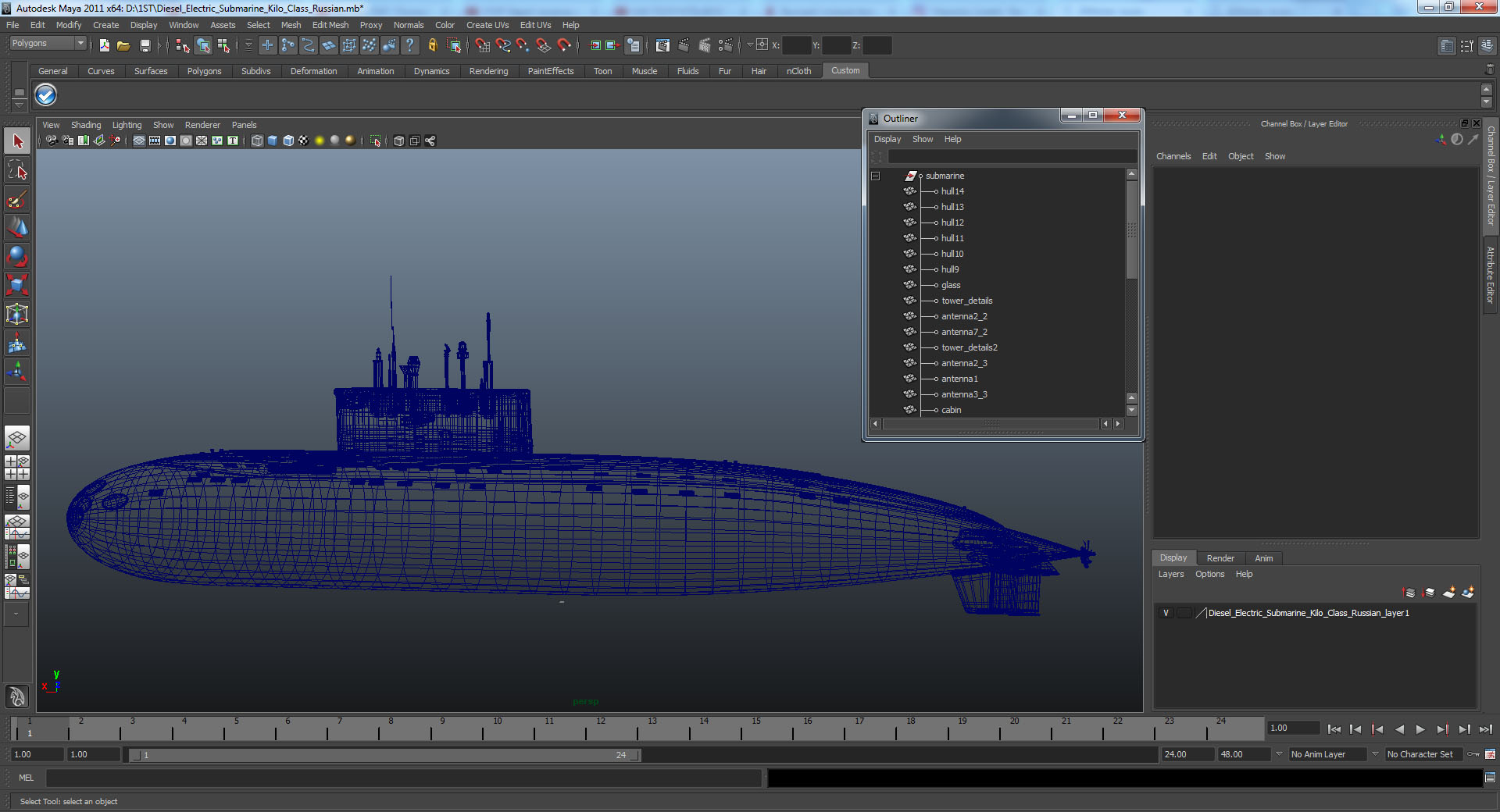 Diesel Electric Submarine Kilo Class Russian is a high quality, photo real 3d model that will enhance detail and realism to any of your rendering projects. The model has a fully textured, detailed design that allows for close-up renders, and was originally modeled in 3ds Max 2020 and rendered with V-Ray. Renders have no postprocessing!