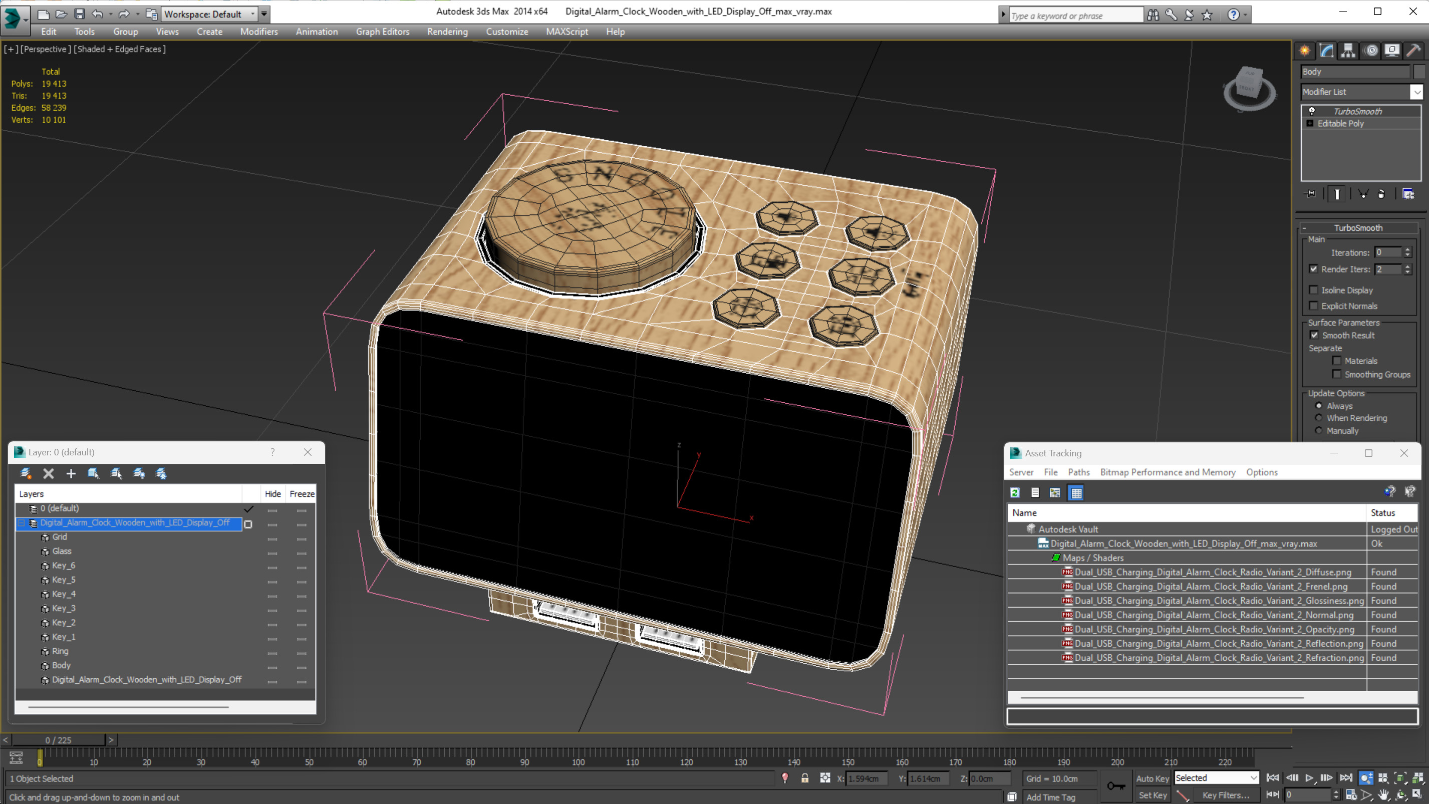 Digital Alarm Clock Wooden with LED Display Off is a high quality, photo real 3d model that will enhance detail and realism to any of your rendering projects. The model has a fully textured, detailed design that allows for close-up renders, and was originally modeled in 3ds Max 2020 and rendered with V-Ray. Renders have no postprocessing!