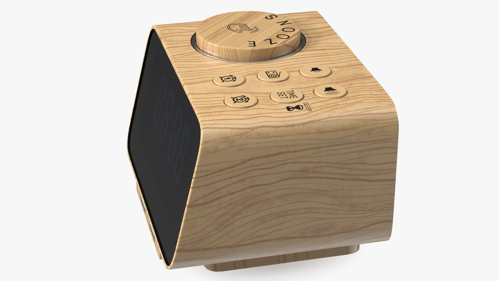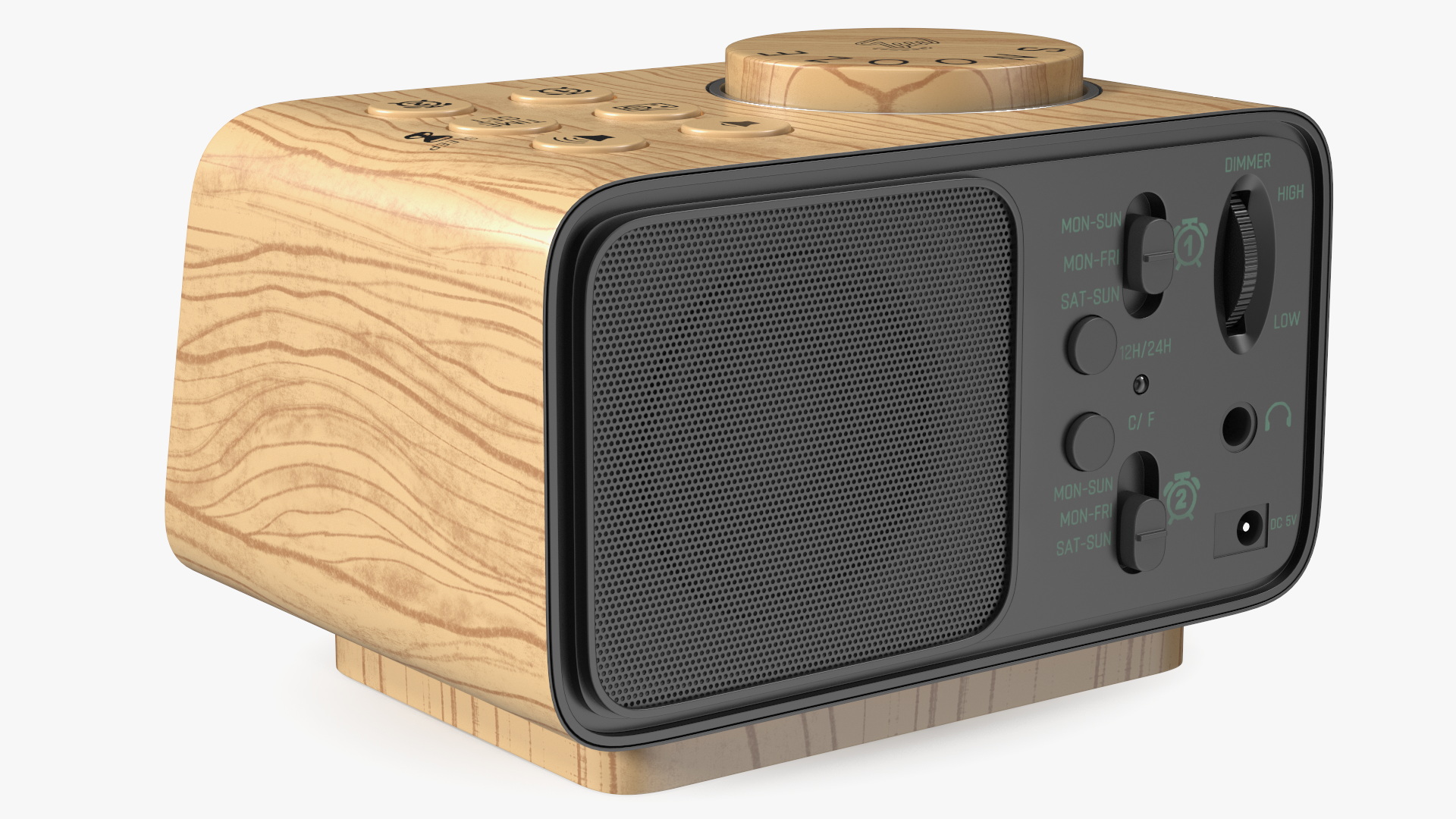 Digital Alarm Clock Wooden with LED Display Off is a three-dimensional model of well known home digital electronic clock (timepiece appliance) which can be used for listening audio broadcasts and timestamp timer signaling.