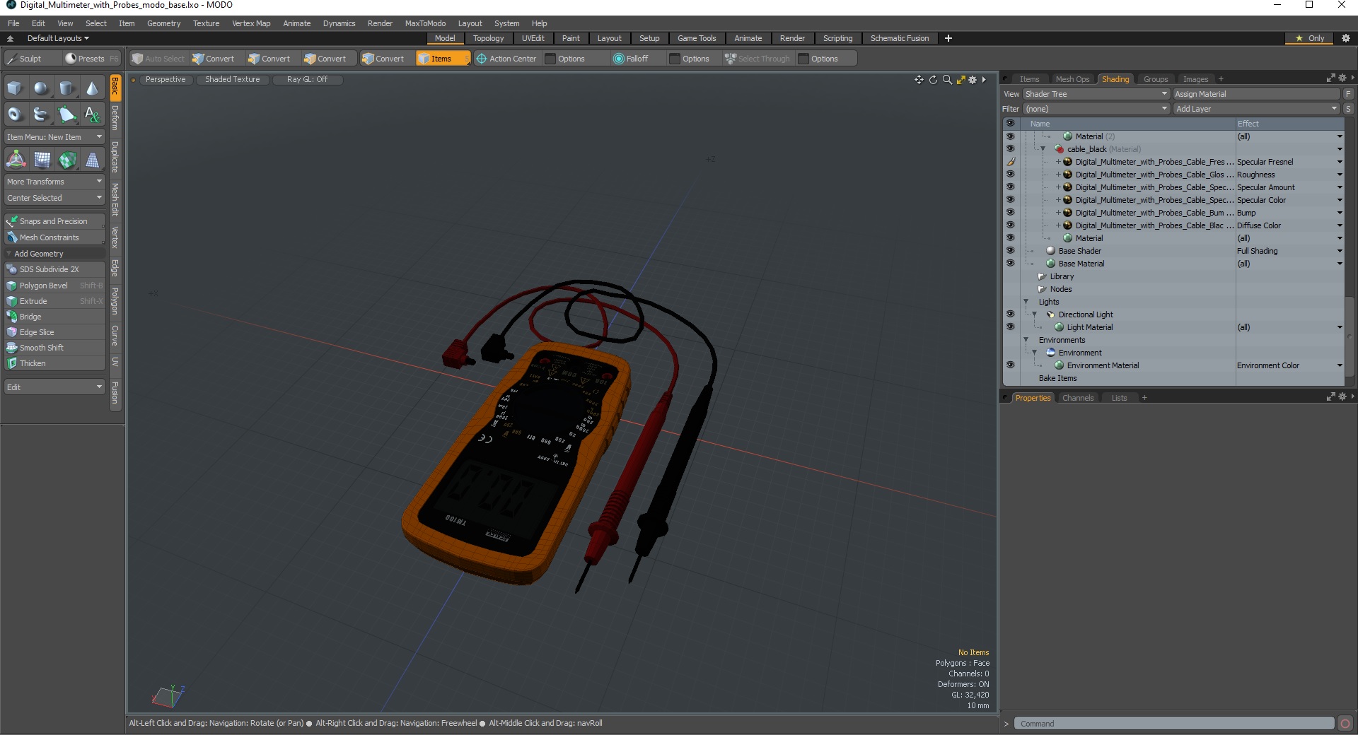 Digital Multimeter with Probes is a high quality, photo real 3d model that will enhance detail and realism to any of your rendering projects. The model has a fully textured, detailed design that allows for close-up renders, and was originally modeled in 3ds Max 2020 and rendered with V-Ray. Renders have no postprocessing!