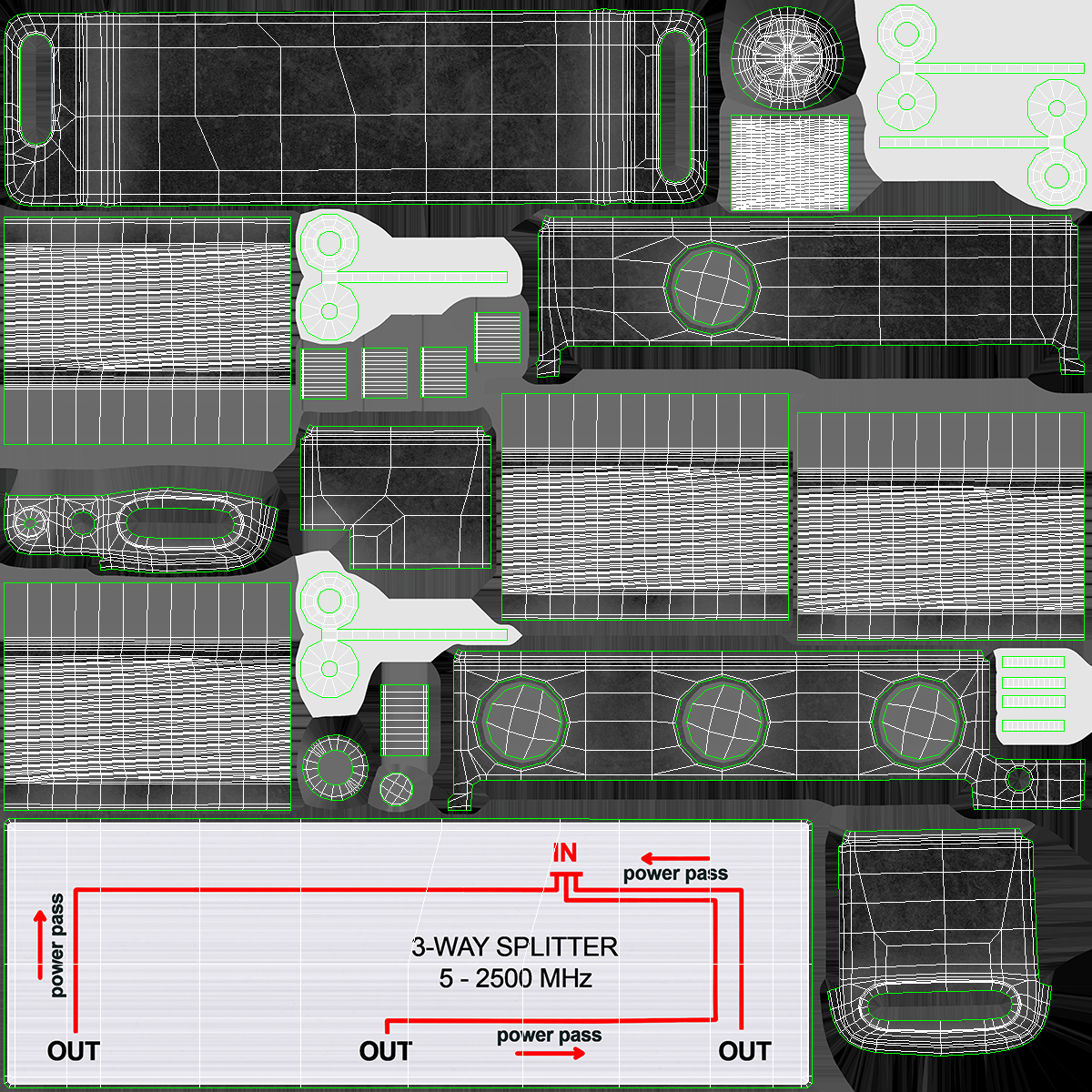 Digital Signal 3 Way Coax Cable Splitter is a high quality, photo real 3d model that will enhance detail and realism to any of your rendering projects. The model has a fully textured, detailed design that allows for close-up renders, and was originally modeled in 3ds Max 2020 and rendered with V-Ray. Renders have no postprocessing!