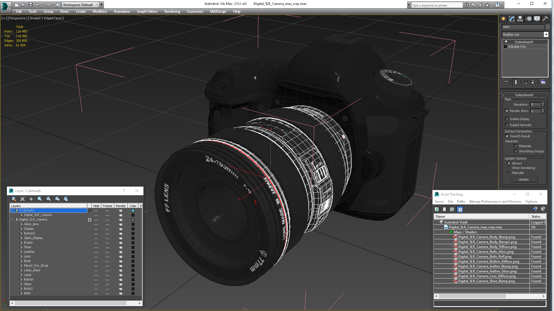 Digital SLR Camera is a high quality, photo real 3d model that will enhance detail and realism to any of your rendering projects. The model has a fully textured, detailed design that allows for close-up renders, and was originally modeled in 3ds Max 2020 and rendered with V-Ray. Renders have no postprocessing!