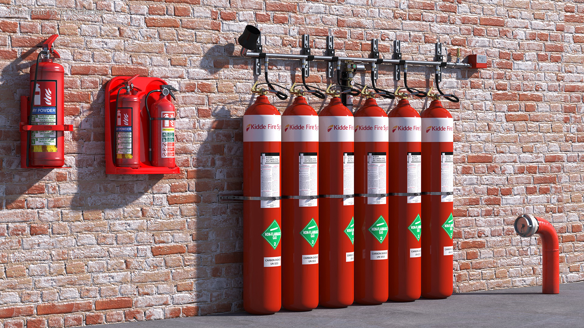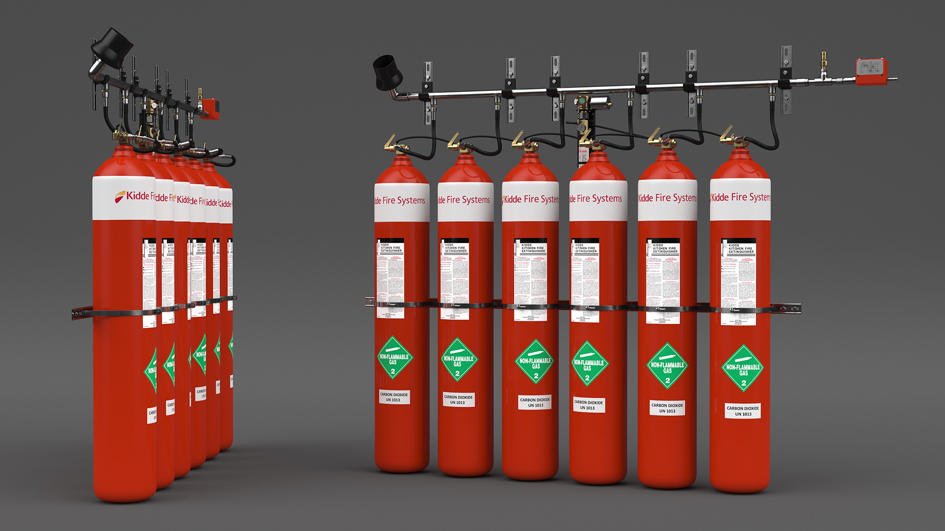 Dioxide Fire Extinguisher System is a 3d model of type of fire suppression system that uses carbon dioxide (CO2) gas to extinguish fires.
