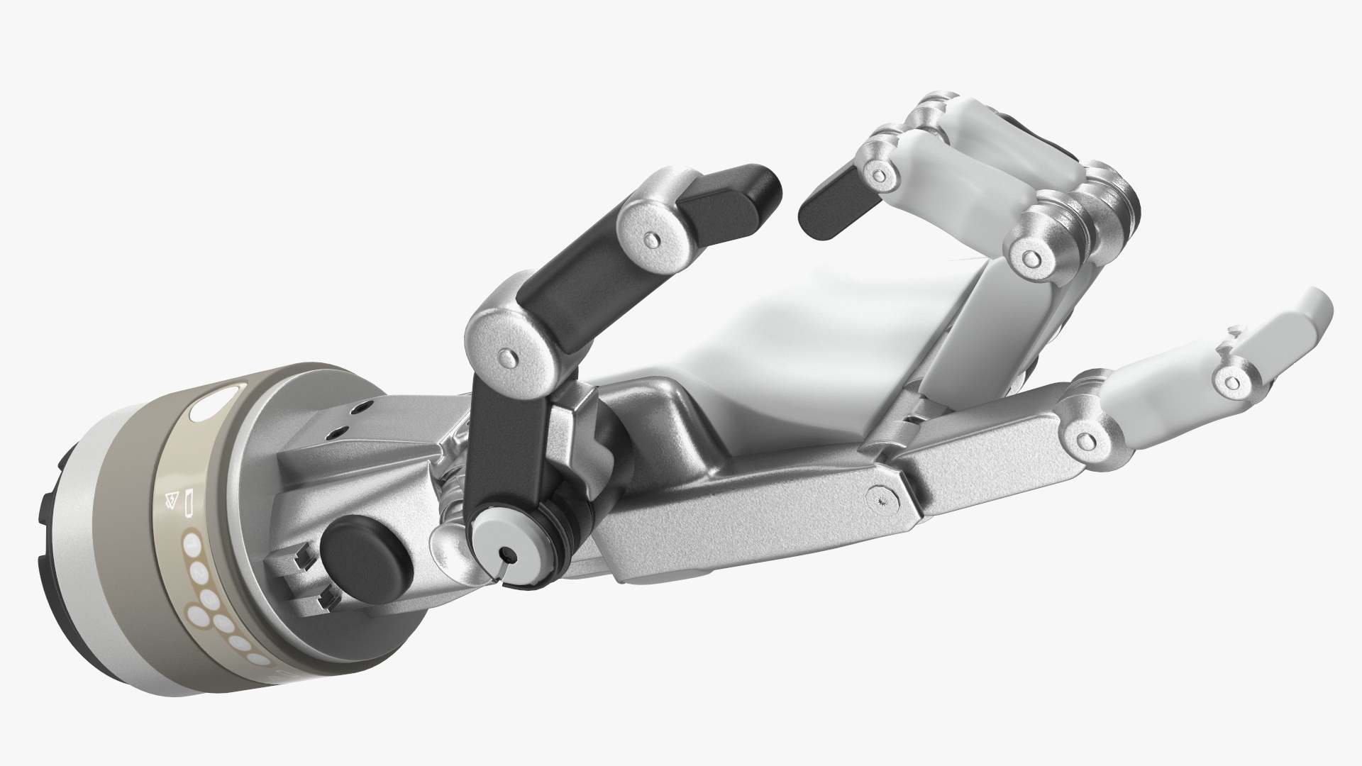 Direction Indication Mechanical Hand is a 3D model of part of robotic humanoid upper limb (arm or hand) which is a component of human shaped robotic device (human-like bot, humanoid type robot, or cyborg) or part of prosthetic machinery.