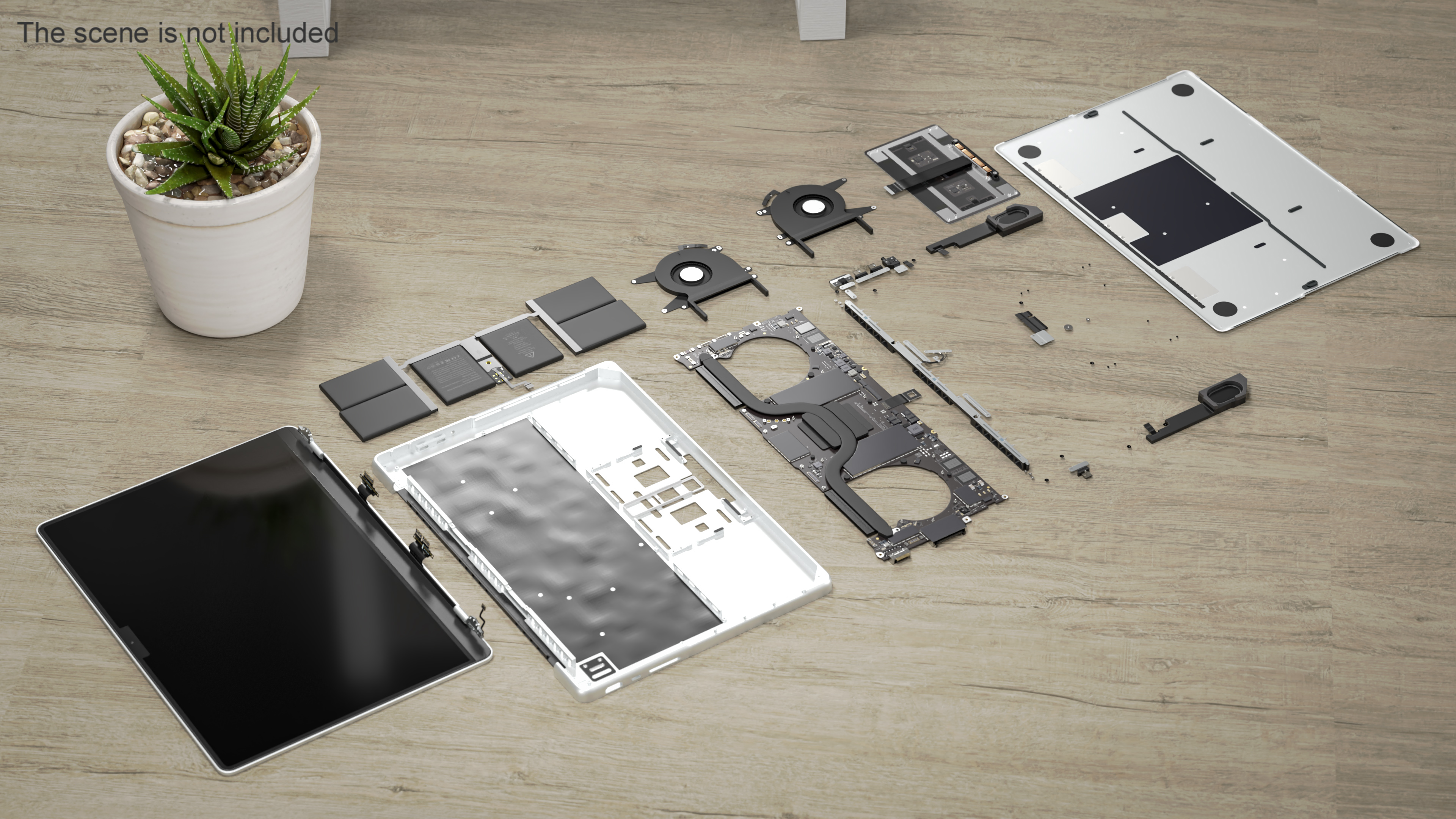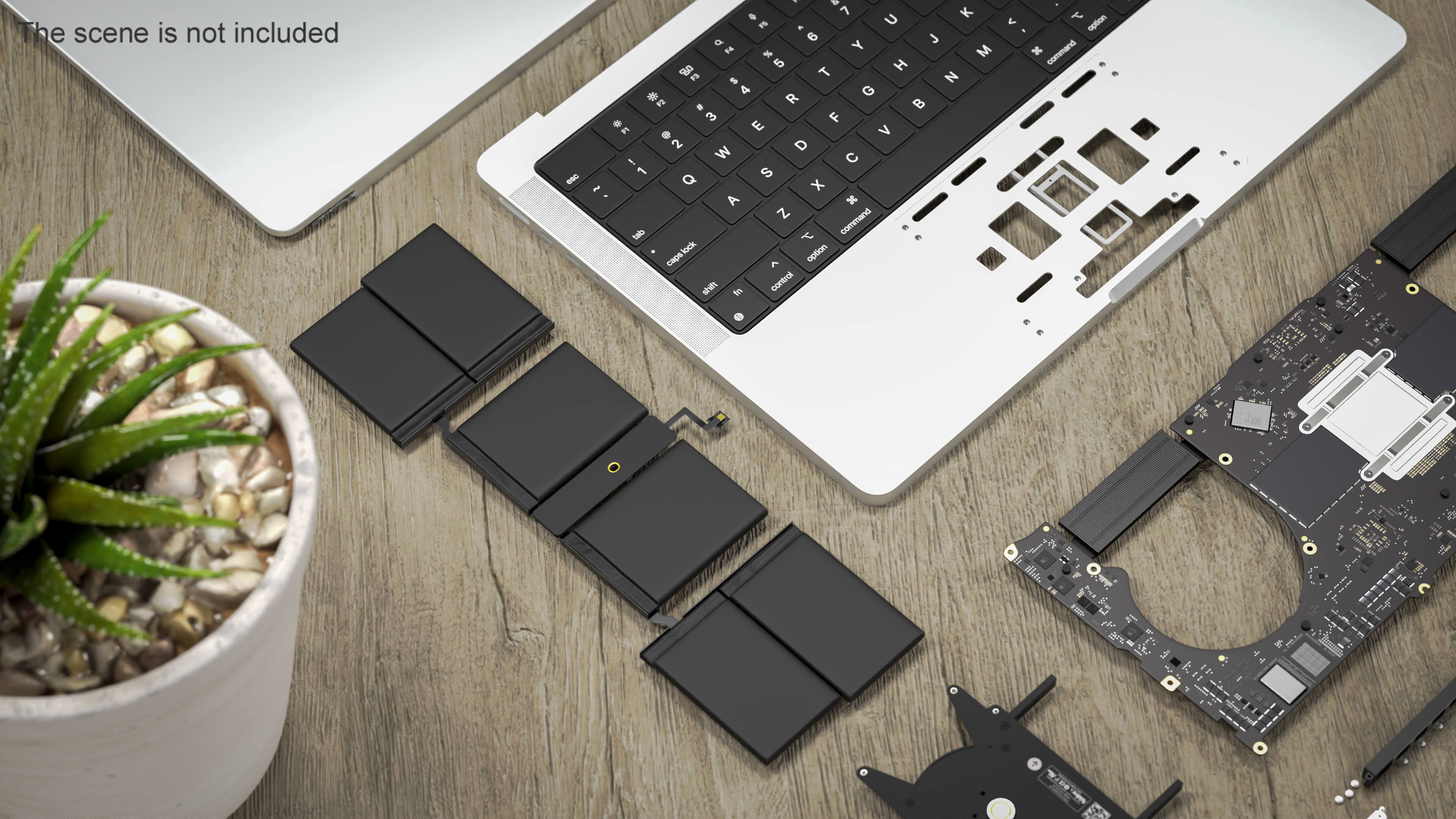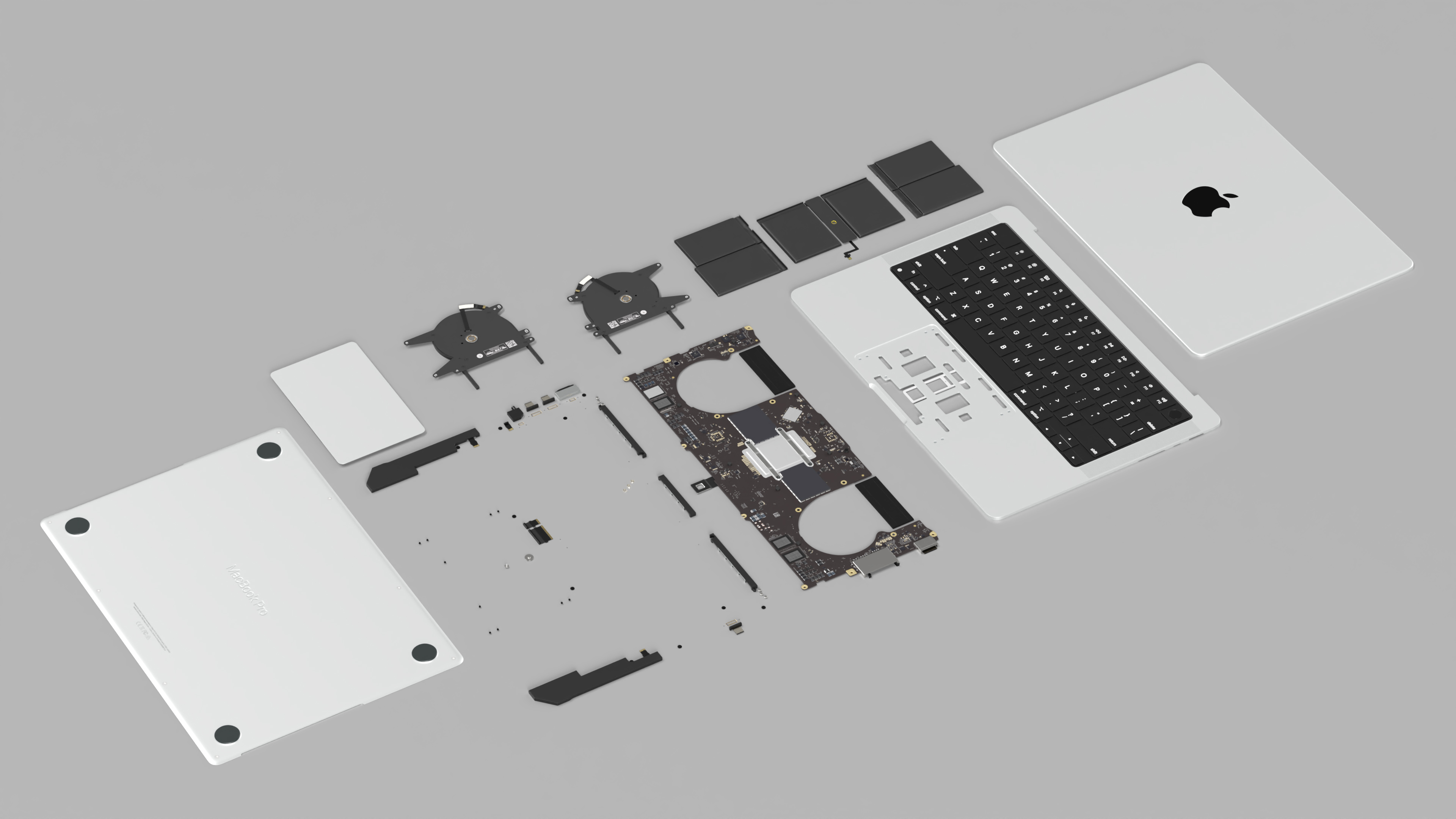 Disassembled Components MacBook Pro 14 M2 is a high quality, photo real 3d model that will enhance detail and realism to any of your rendering projects. The model has a fully textured, detailed design that allows for close-up renders, and was originally modeled in 3ds Max 2020 and rendered with V-Ray. Renders have no postprocessing!