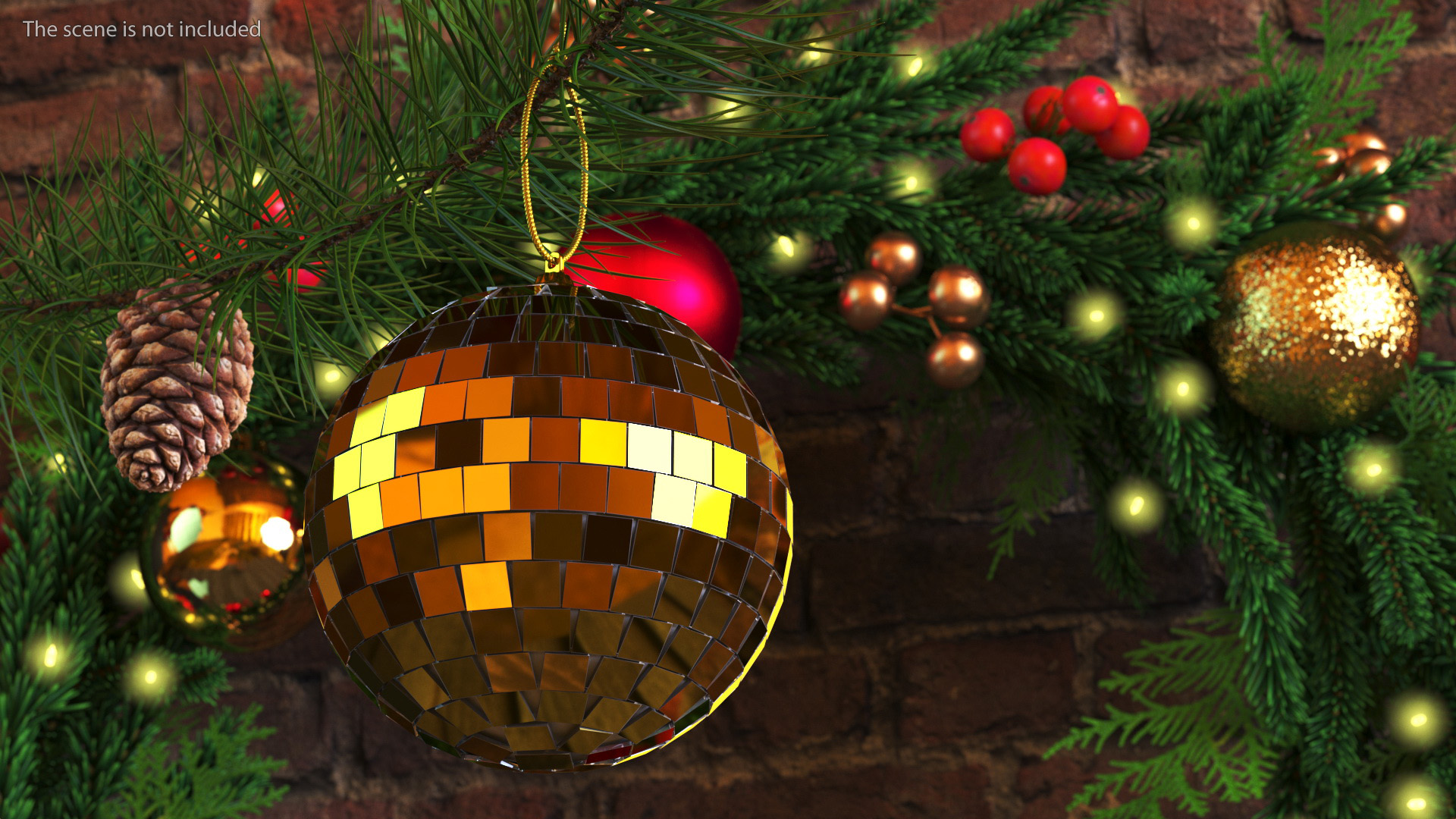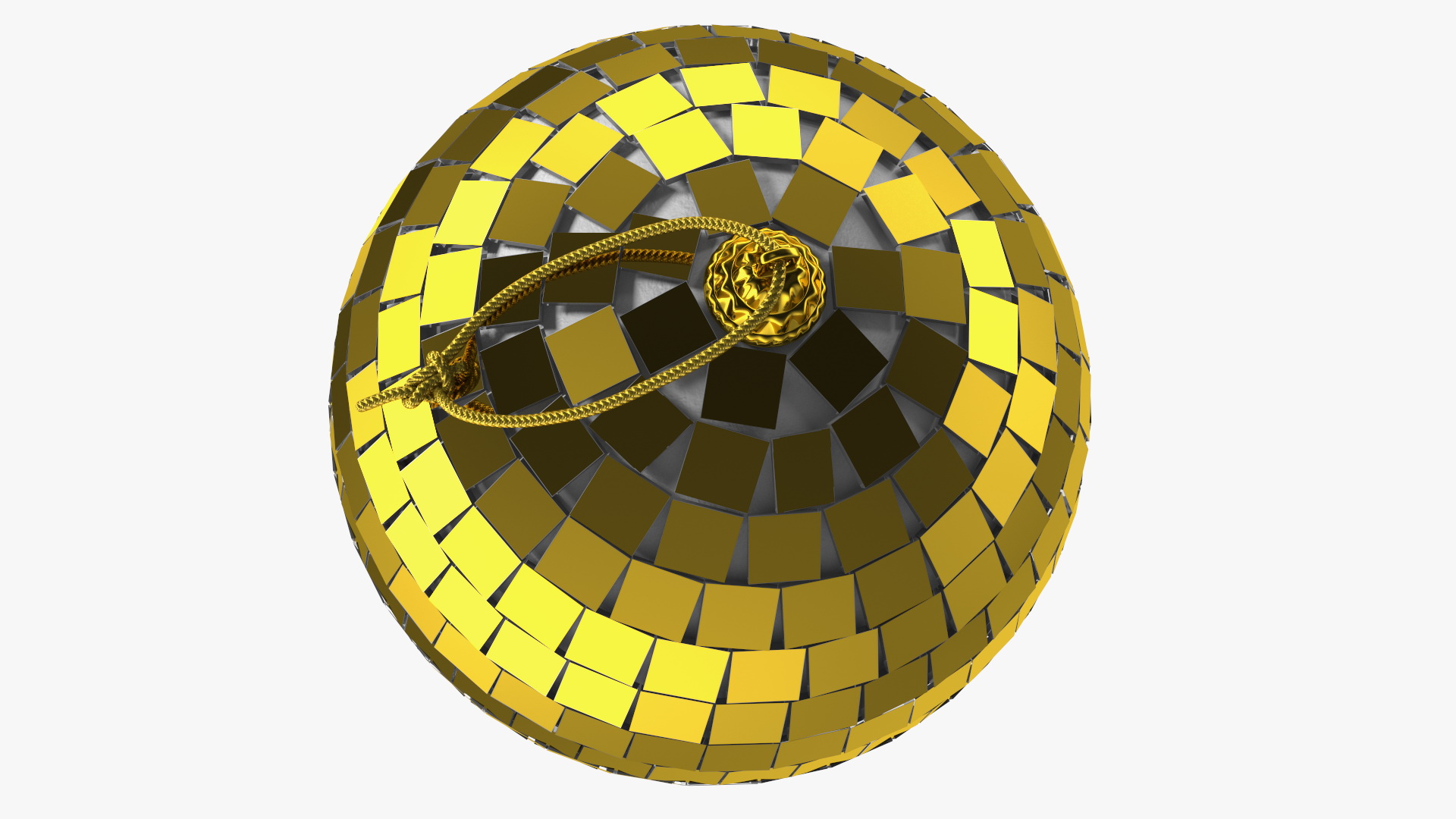 Discoball for Christmas Tree Gold is a 3d model of object that is hung on Christmas trees for decoration.