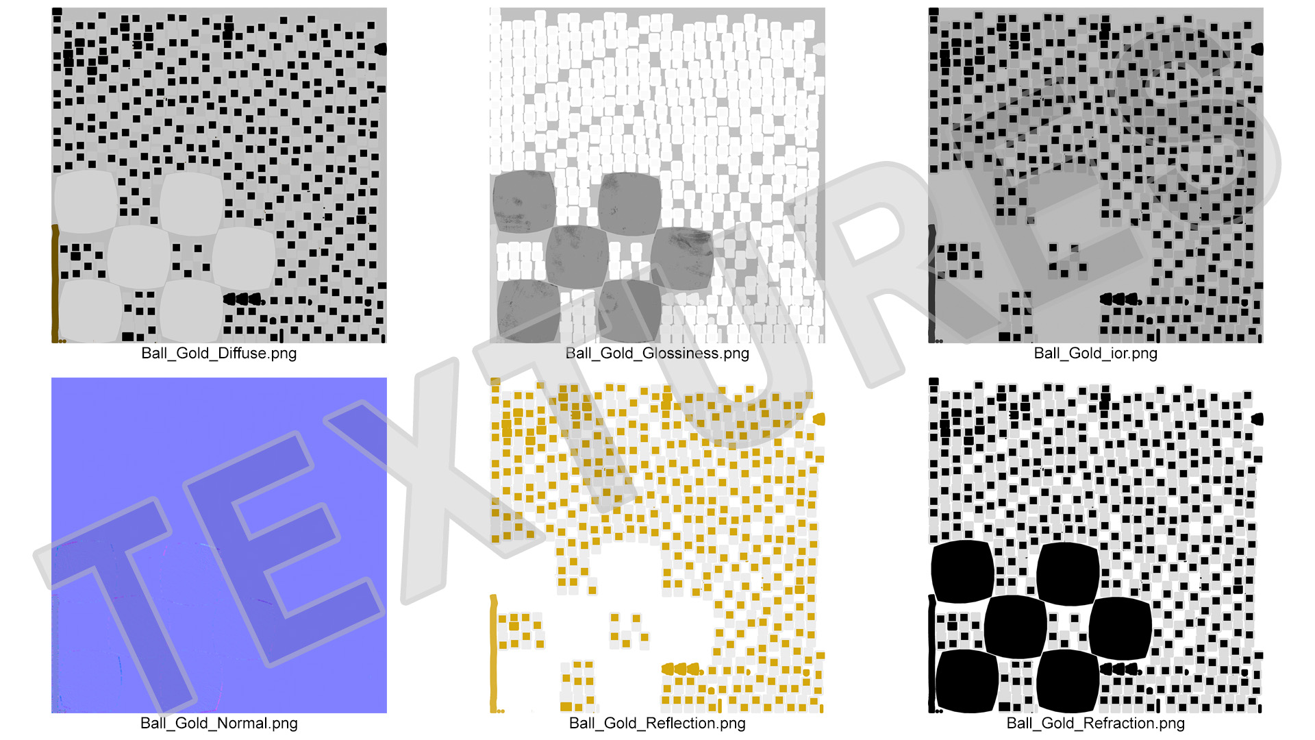 All textures and materials are included and mapped. (All colors can be easily modified.)