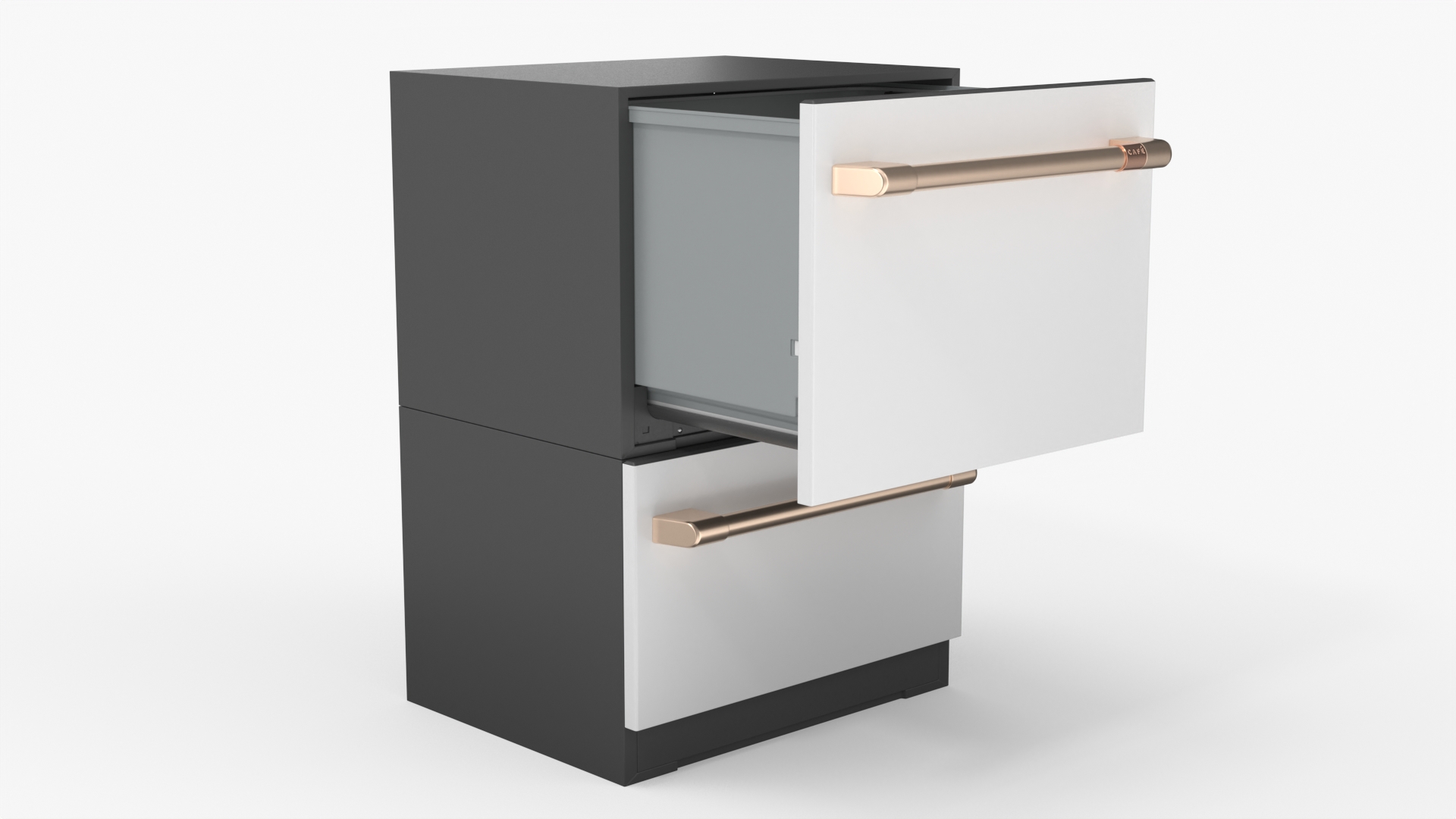 Dishwasher Double Drawer Cafe 24 Open is a three-dimensional model of a modern kitchen appliance designed to provide flexible and efficient dishwashing capabilities in a compact form.