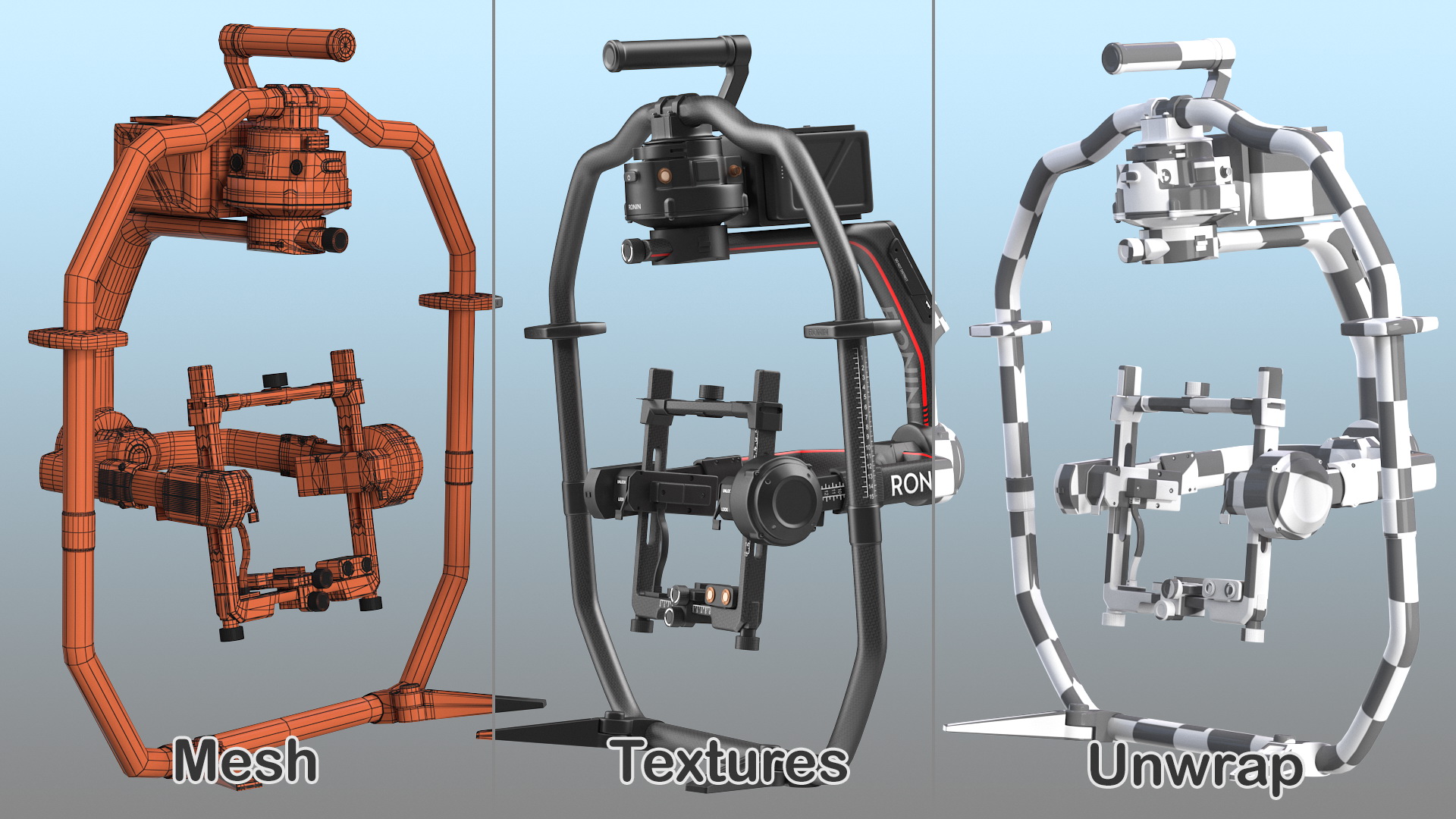 DJI Ronin 2 Camera Stabilizer is a high quality, photo real 3d model that will enhance detail and realism to any of your rendering projects. The model has a fully textured, detailed design that allows for close-up renders, and was originally modeled in 3ds Max 2020 and rendered with V-Ray. Renders have no postprocessing!