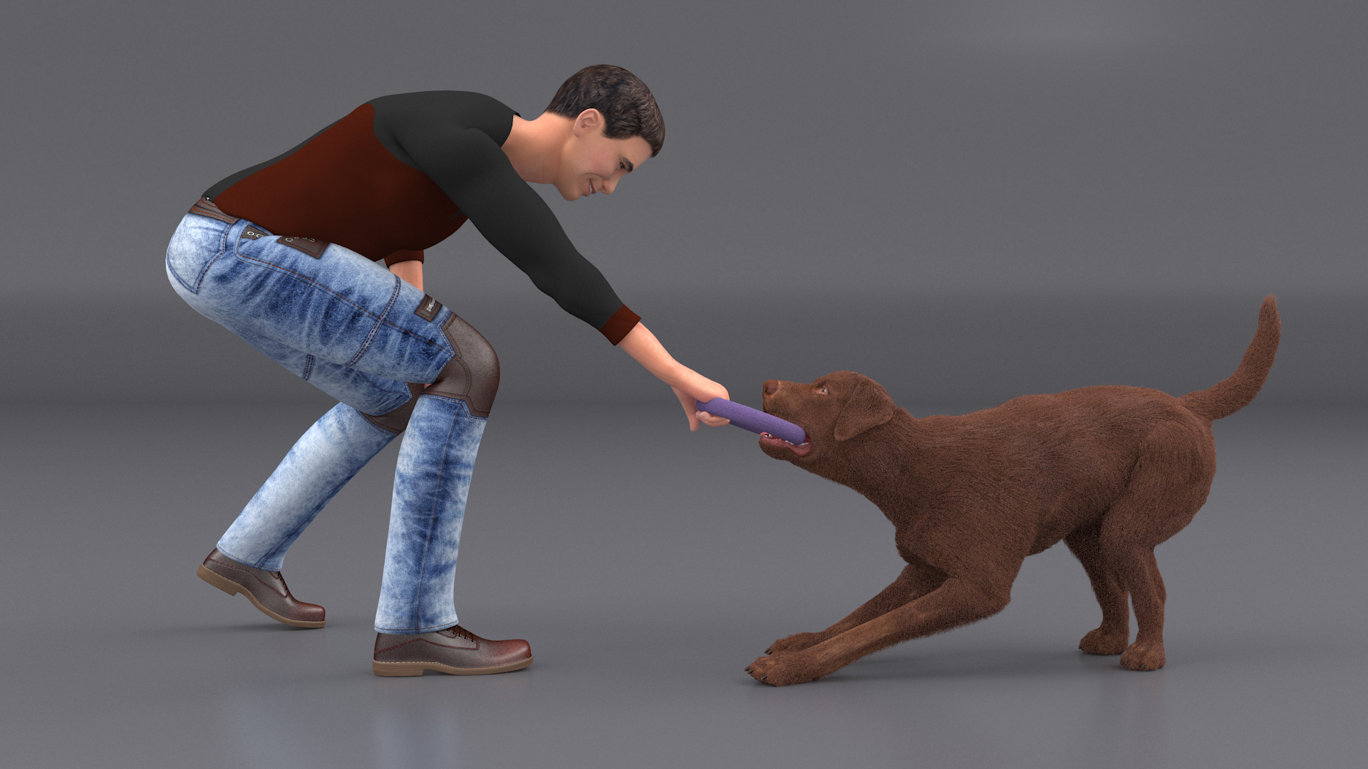 Dog Owner Playing with Labrador Fur is a high quality, photo real 3d model that will enhance detail and realism to any of your rendering projects. The model has a fully textured, detailed design that allows for close-up renders, and was originally modeled in 3ds Max 2020 and rendered with V-Ray. Renders have no postprocessing!