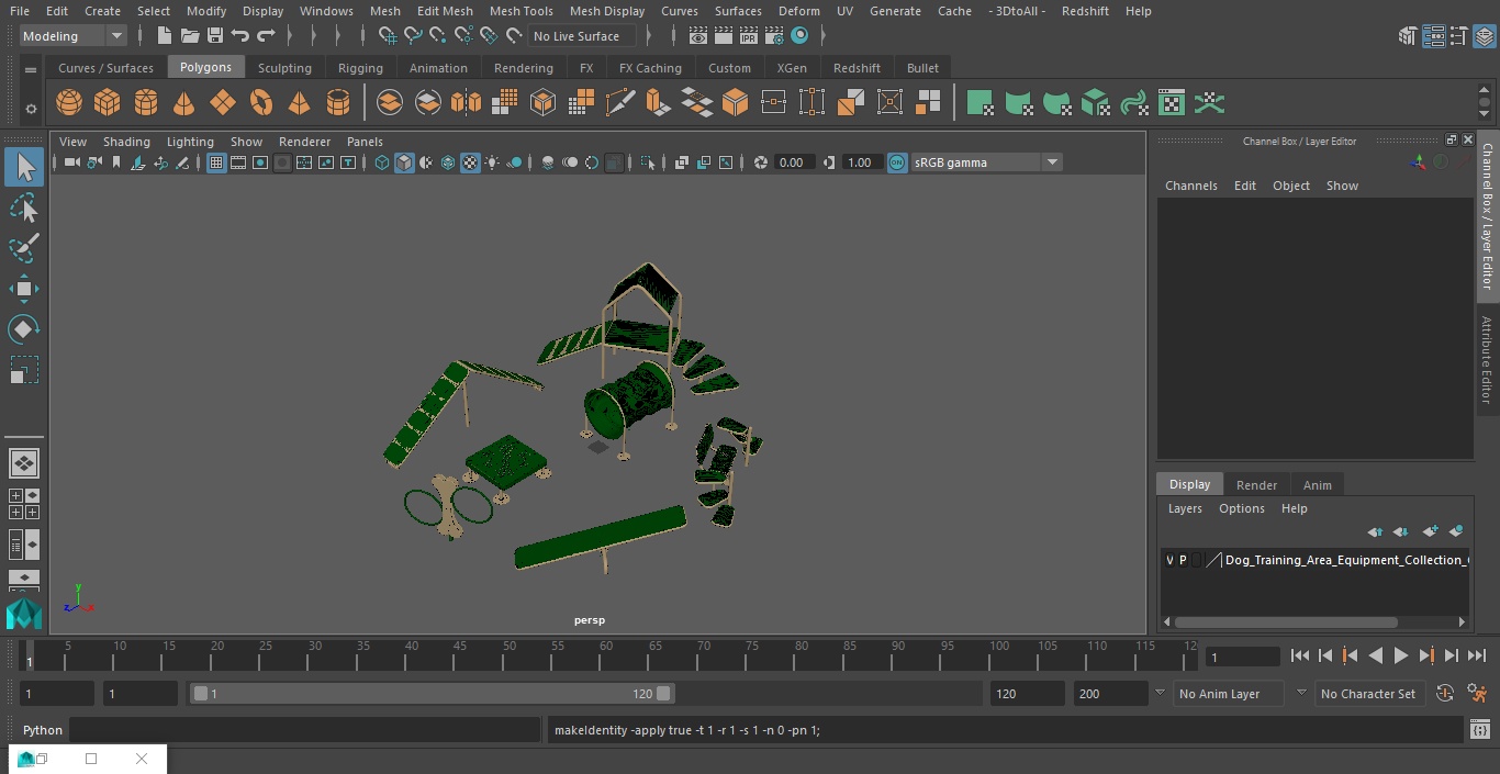 Dog Training Area Equipment Collection Green is a set of 3d models of equipment intended for exercising in a controlled environment under the supervision of their owners.