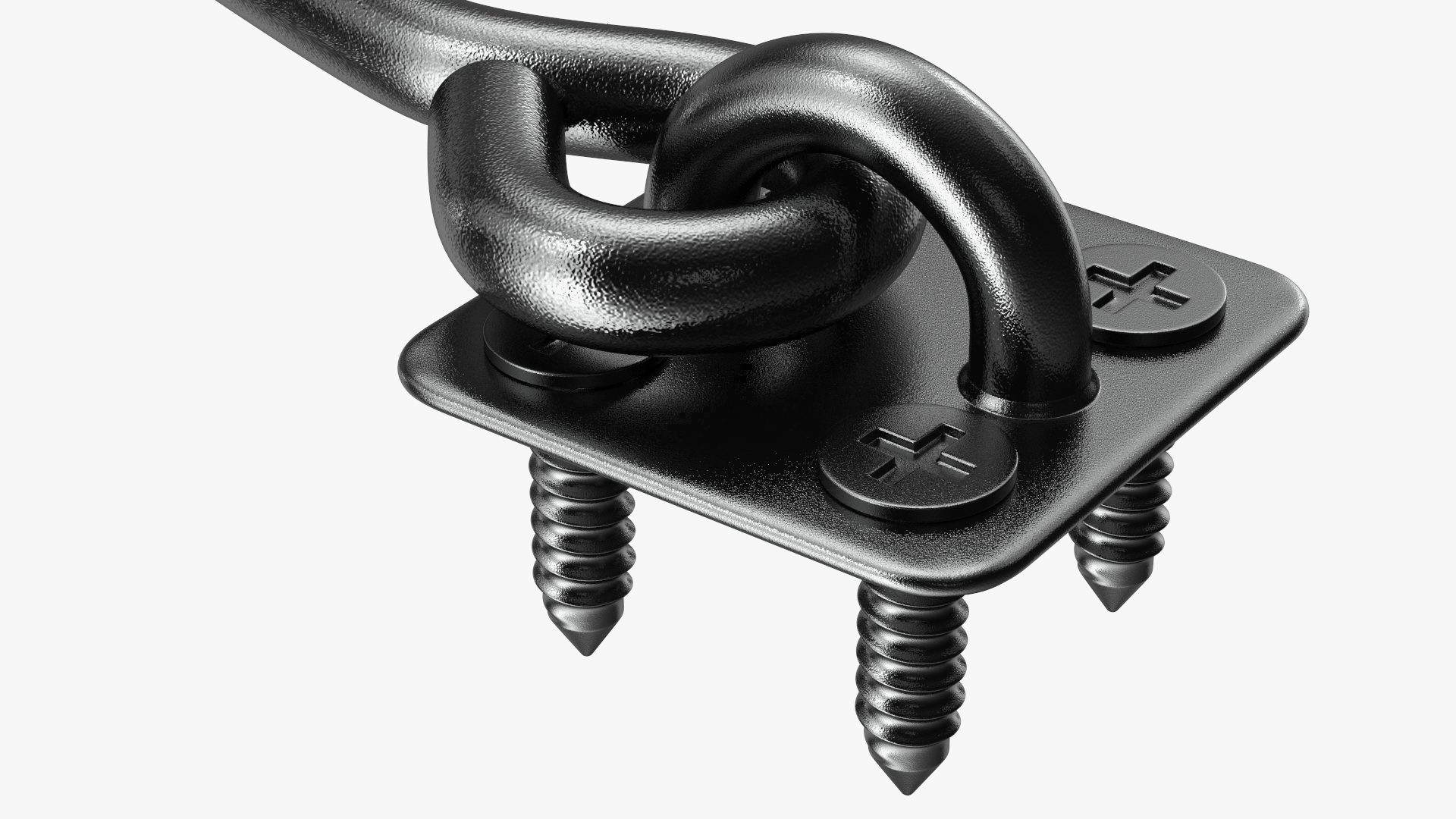 Door Hook and Eye Latch with Mounting Screws Black is a high quality, photo real 3d model that will enhance detail and realism to any of your rendering projects. The model has a fully textured, detailed design that allows for close-up renders, and was originally modeled in 3ds Max 2020 and rendered with V-Ray. Renders have no postprocessing!