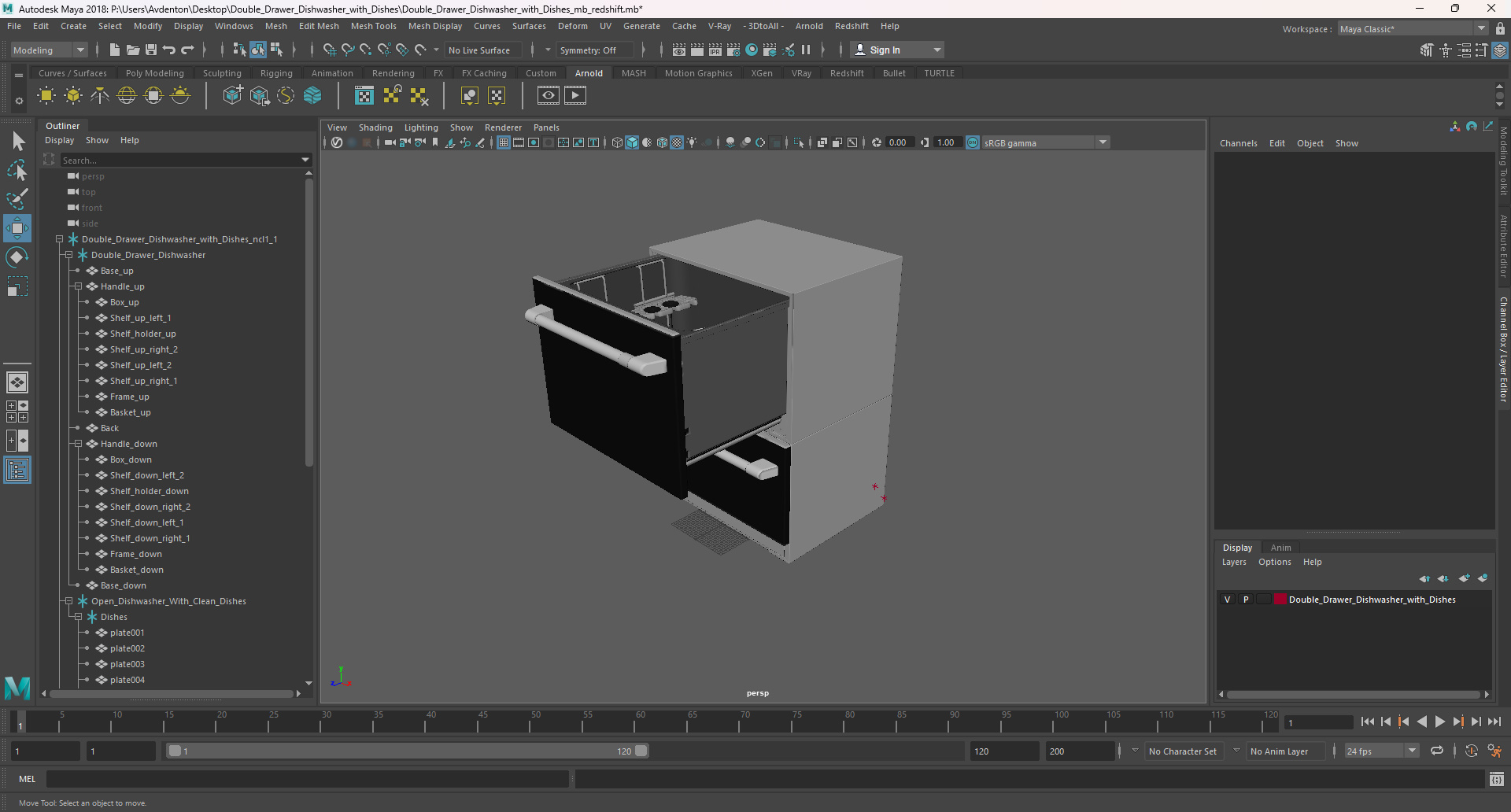 Double Drawer Dishwasher with Dishes is a high quality, photo real 3d model that will enhance detail and realism to any of your rendering projects. The model has a fully textured, detailed design that allows for close-up renders, and was originally modeled in 3ds Max 2020 and rendered with V-Ray. Renders have no postprocessing!